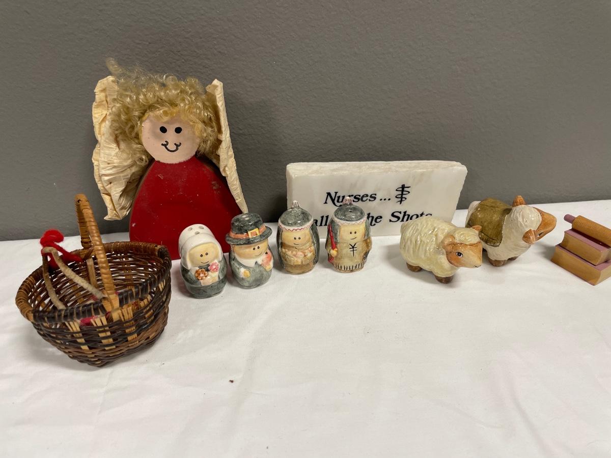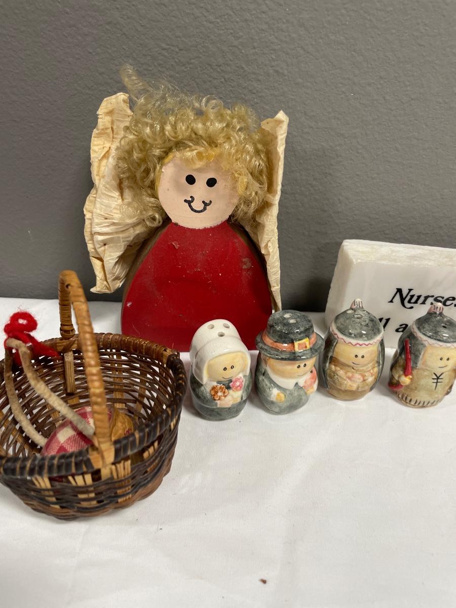 Pilgrim and Indian salt and pepper shakers with nurse decor