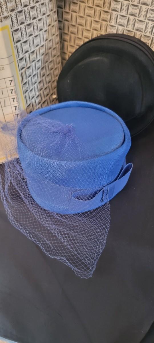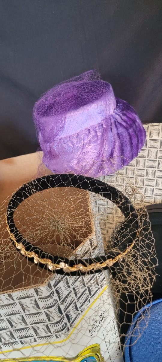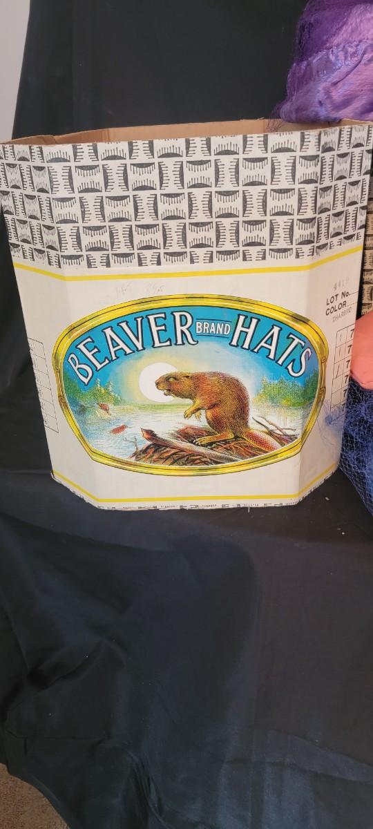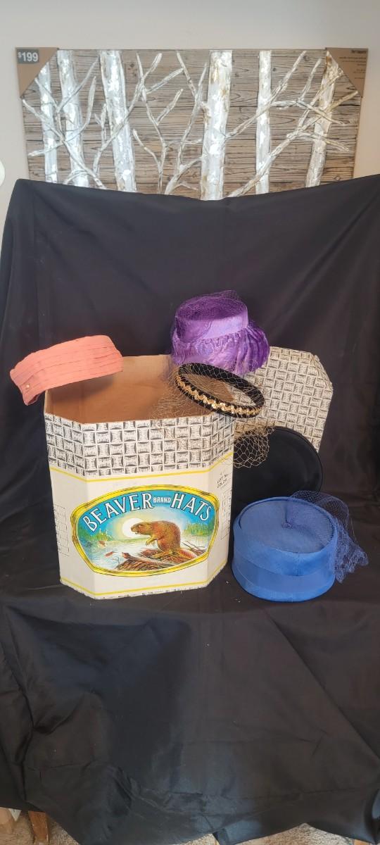 Collection of pill bix style women's fashion hats. Beaver Brand hat box