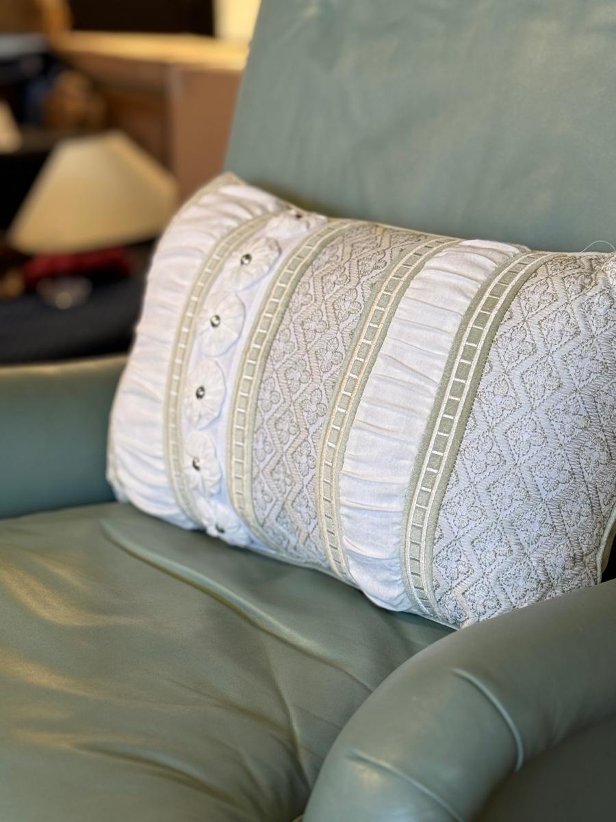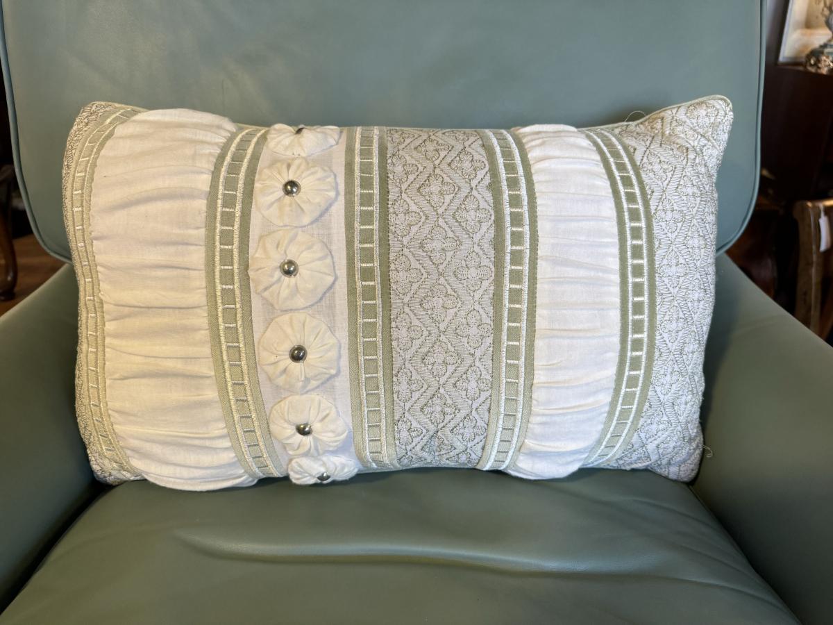 Light sage green decorative pillow with velvet back. Jessica Simpson.