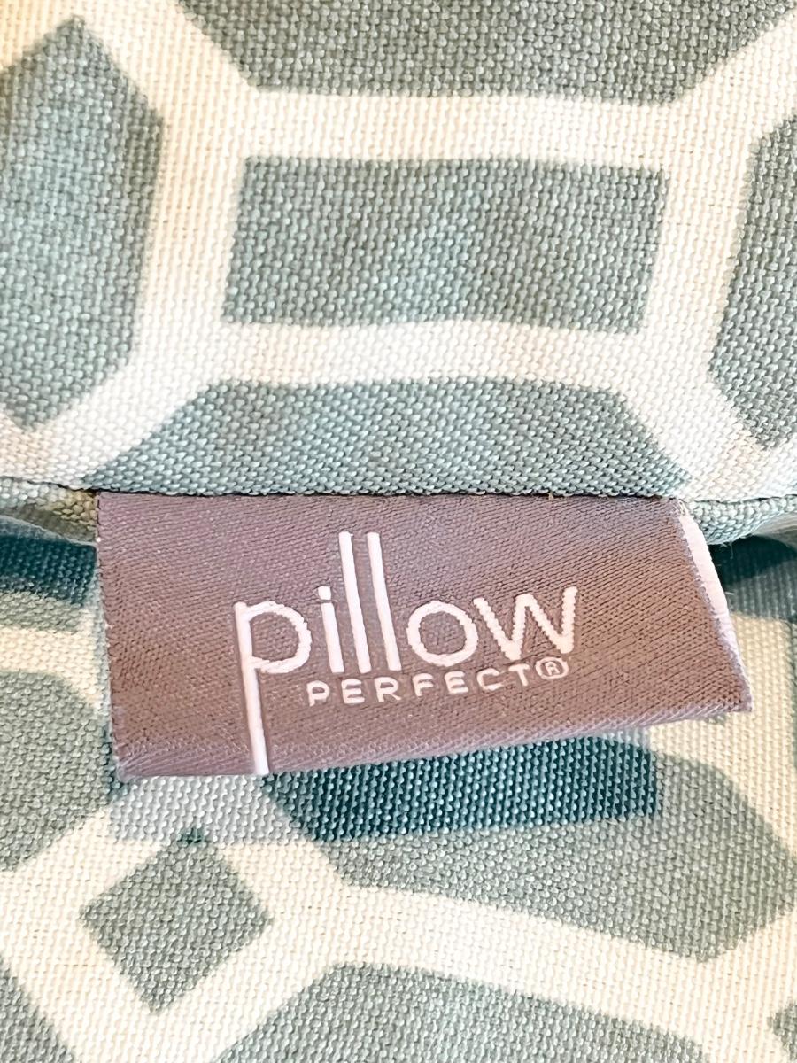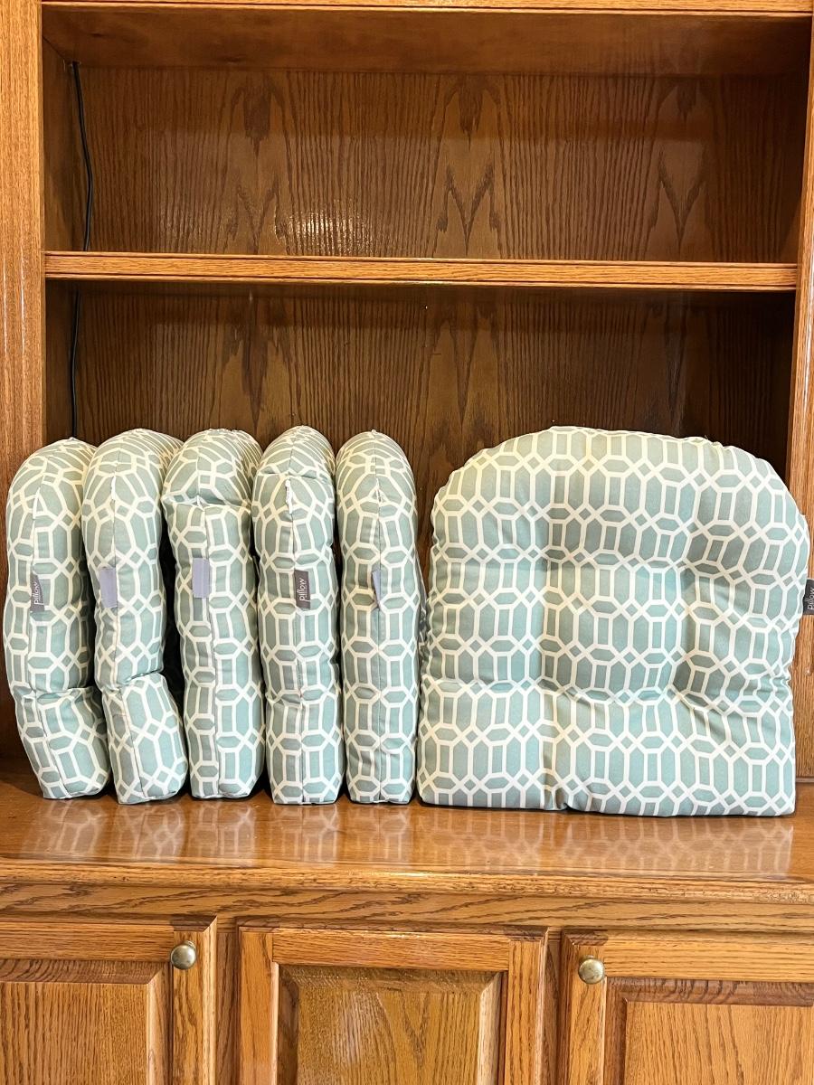 PILLOW PERFECT ~ Set Of Six (6) ~ Sage & White Quartz Pattern Chair Cushions