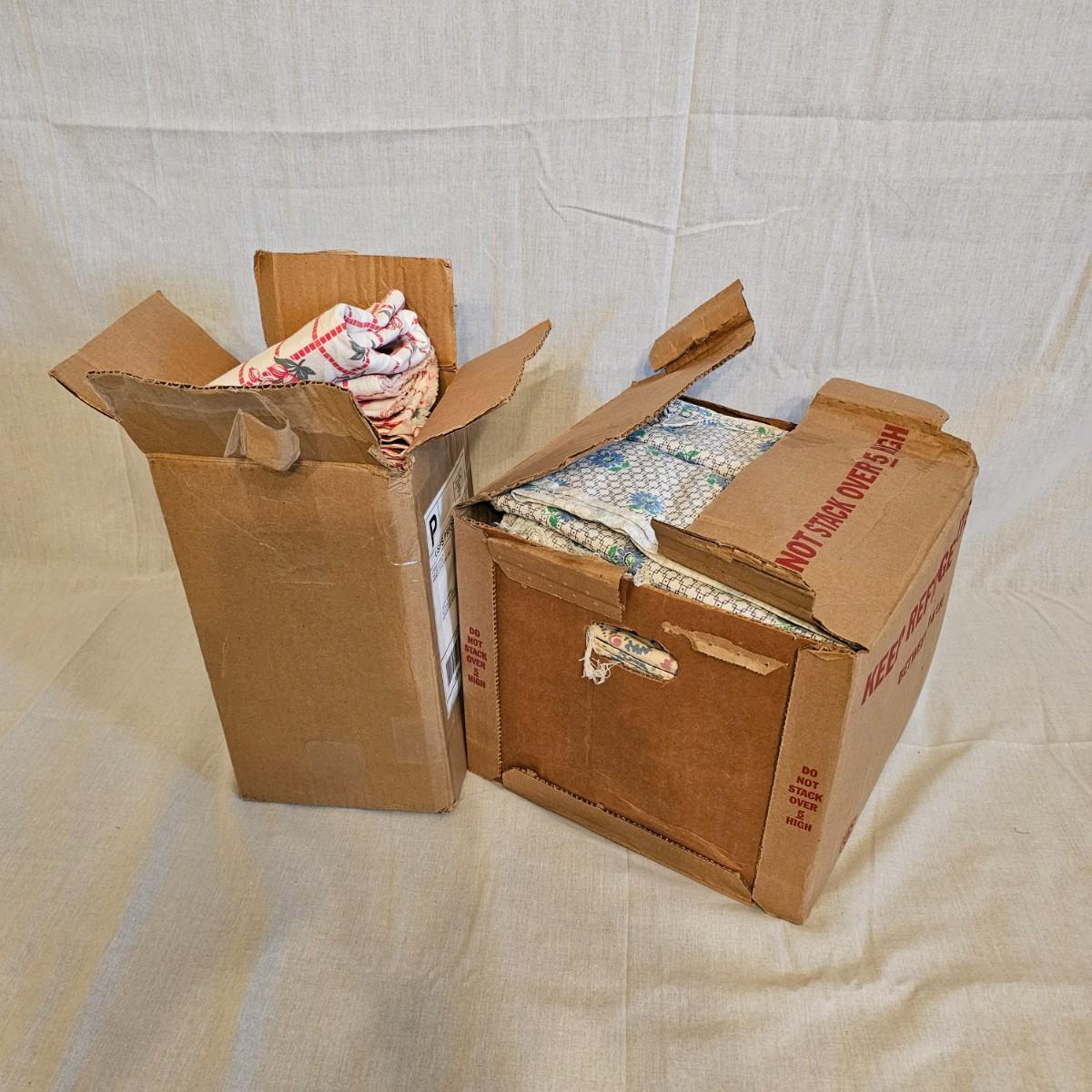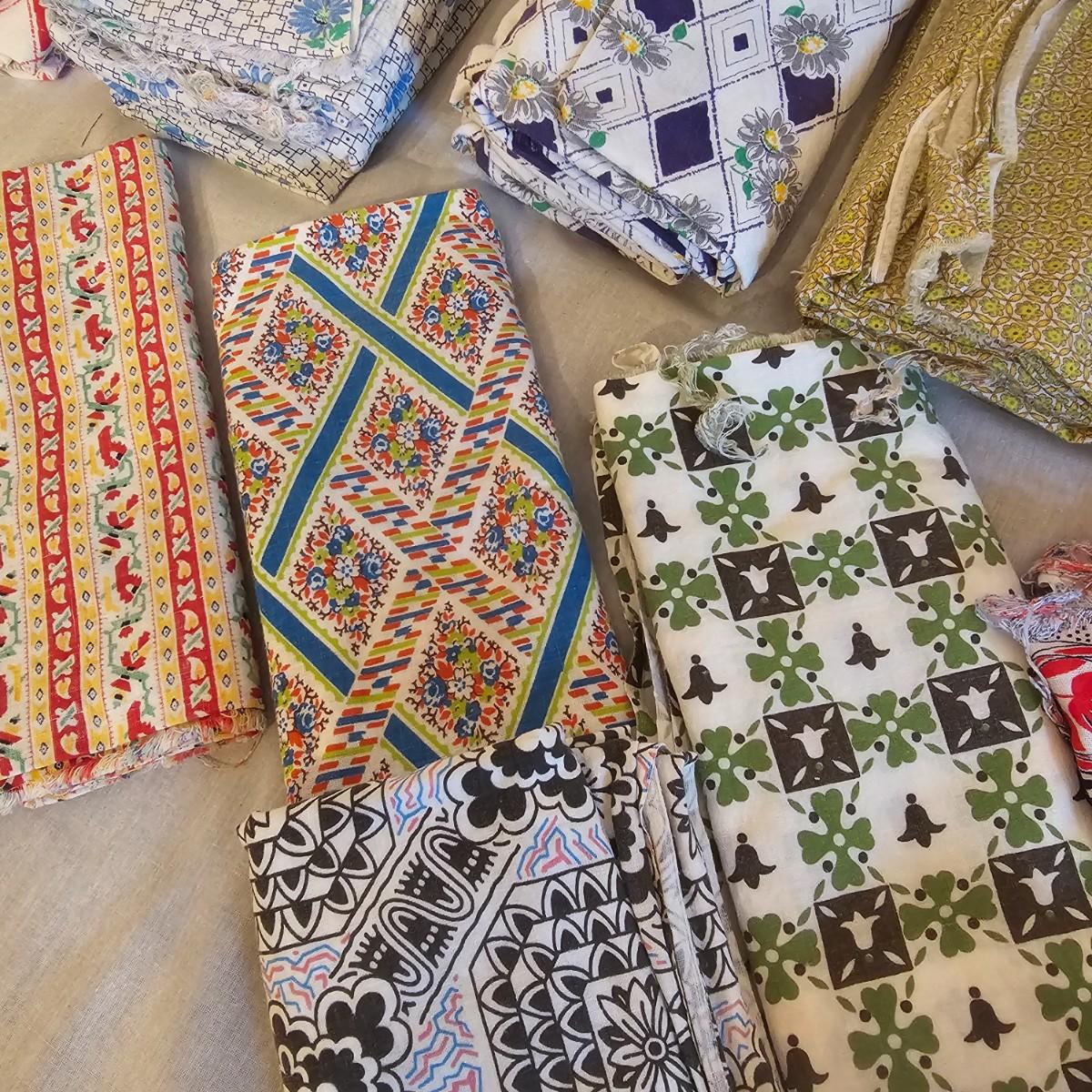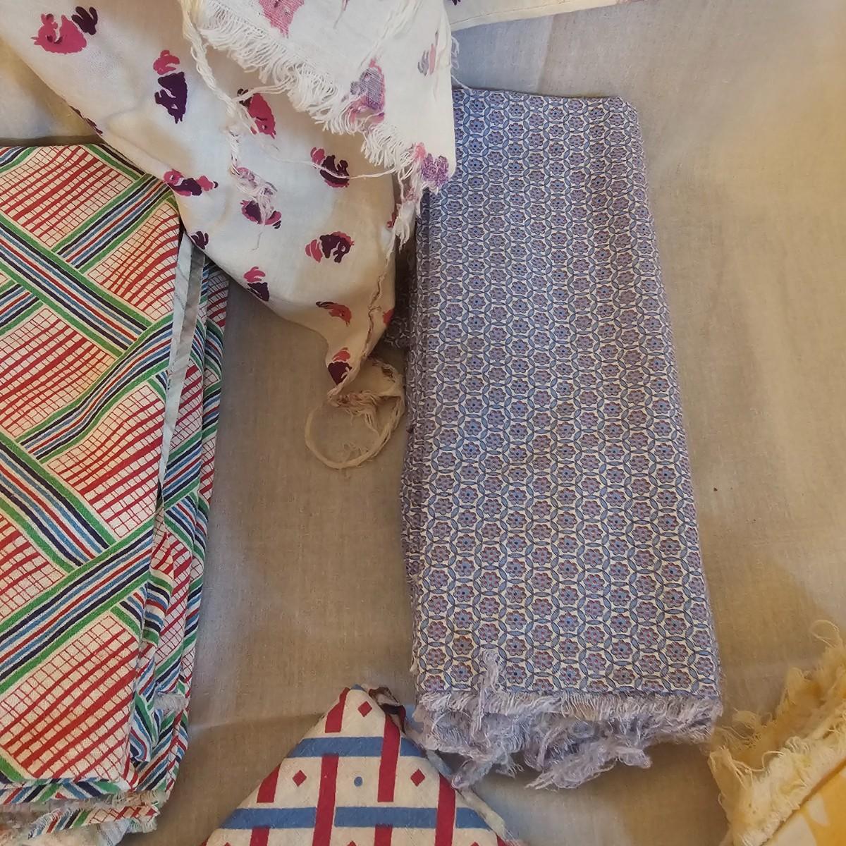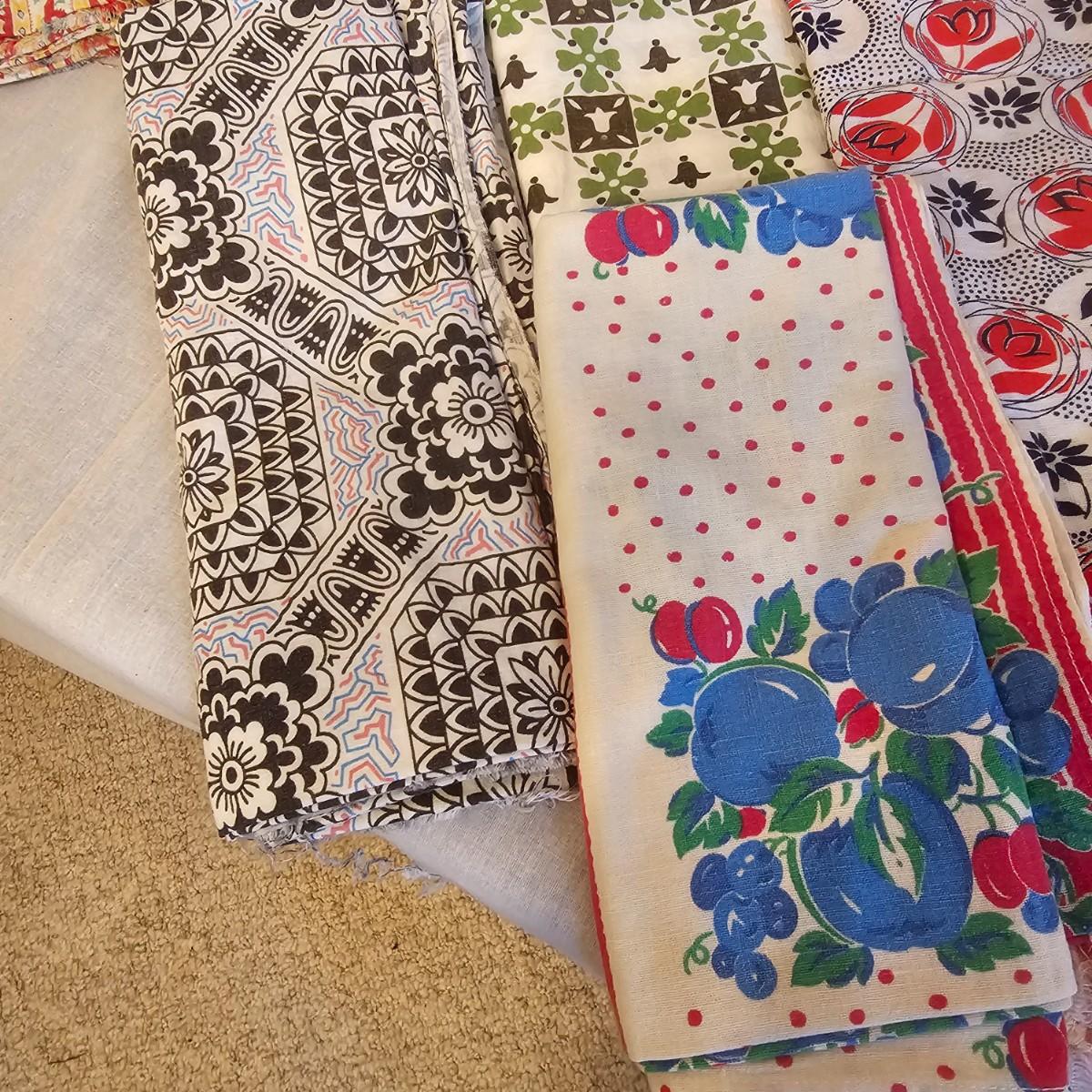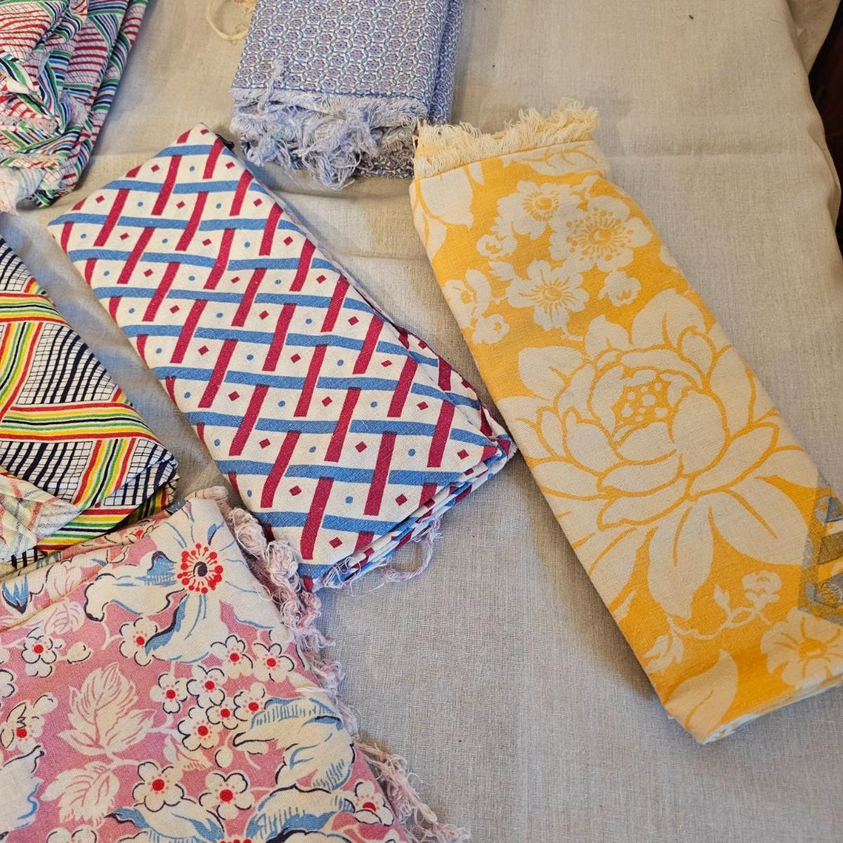 Over 40 pieces of pre-cut fabric to make pillow cases. Brightly colored flowers, fruit and patterns are in singles, twos, threes and fours to make approximately large size pillow cases. Fabric measures on average 42" x 33". Some items near completion, others in work. See photos for details. Shipping available.