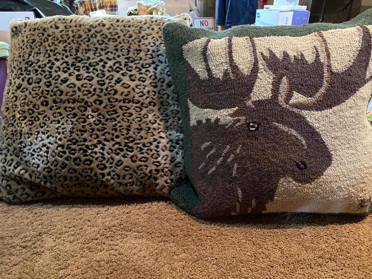 Leopard print pillow, moose pillow, Native American pillow, wicker basket