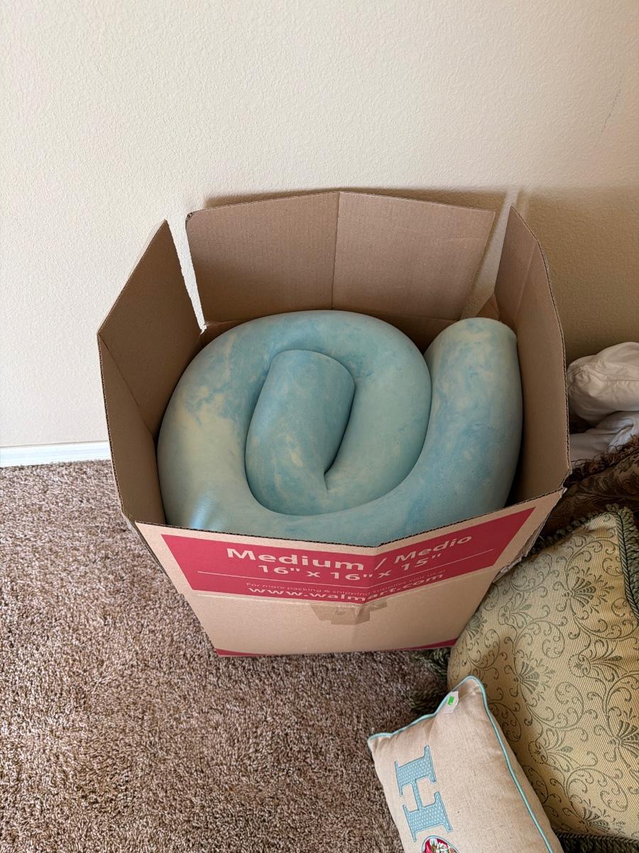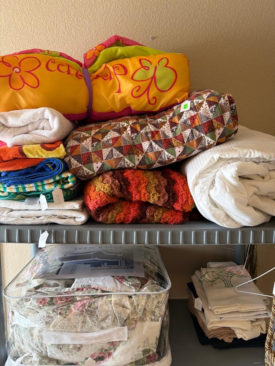 Beach Towels, Blankets, Pillows and foam for a bed.