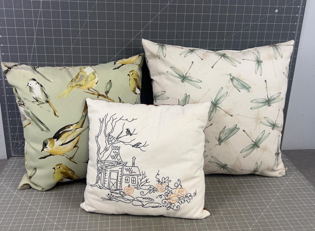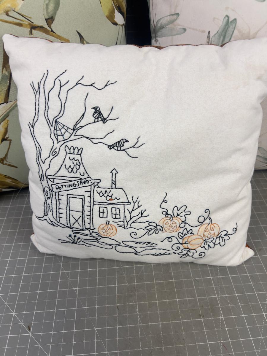 Pillows: Haunted House Hand Embroidered Plus 2 Outdoor Sage Green