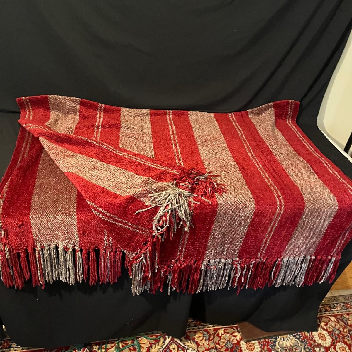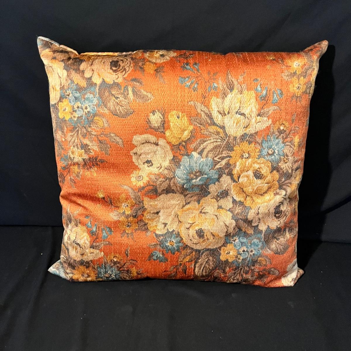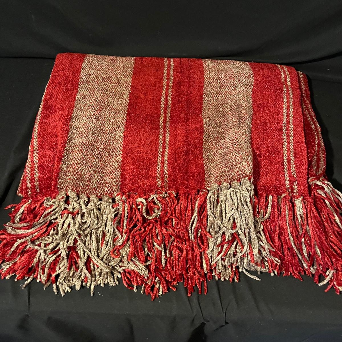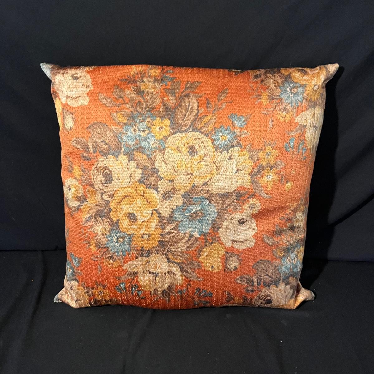 Lot includes seven pillows in a variety of sizes and a throw that measures 50” x 86”. Largest pillow measures 24” x 24”.