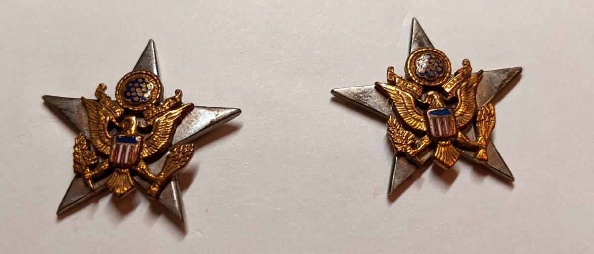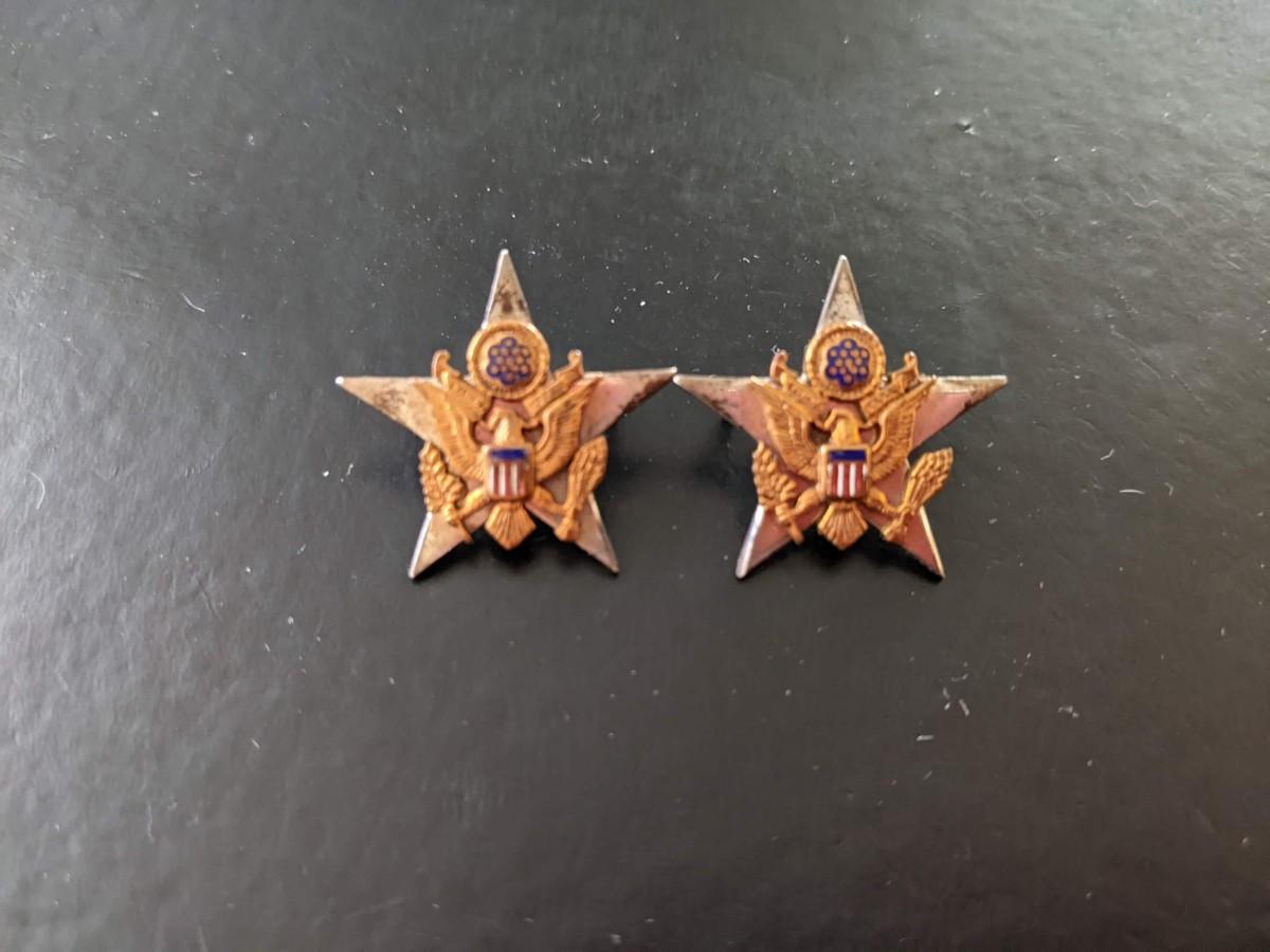 Pair (2) US Army General Staff Corp Collar Insignia Clutch back Sterling silver