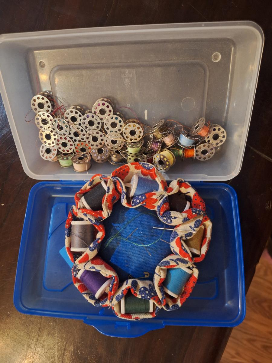 pin cushion and bobbins