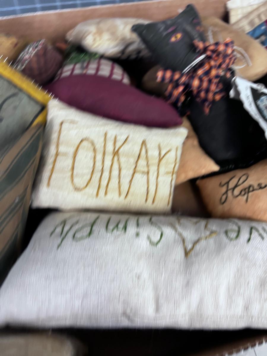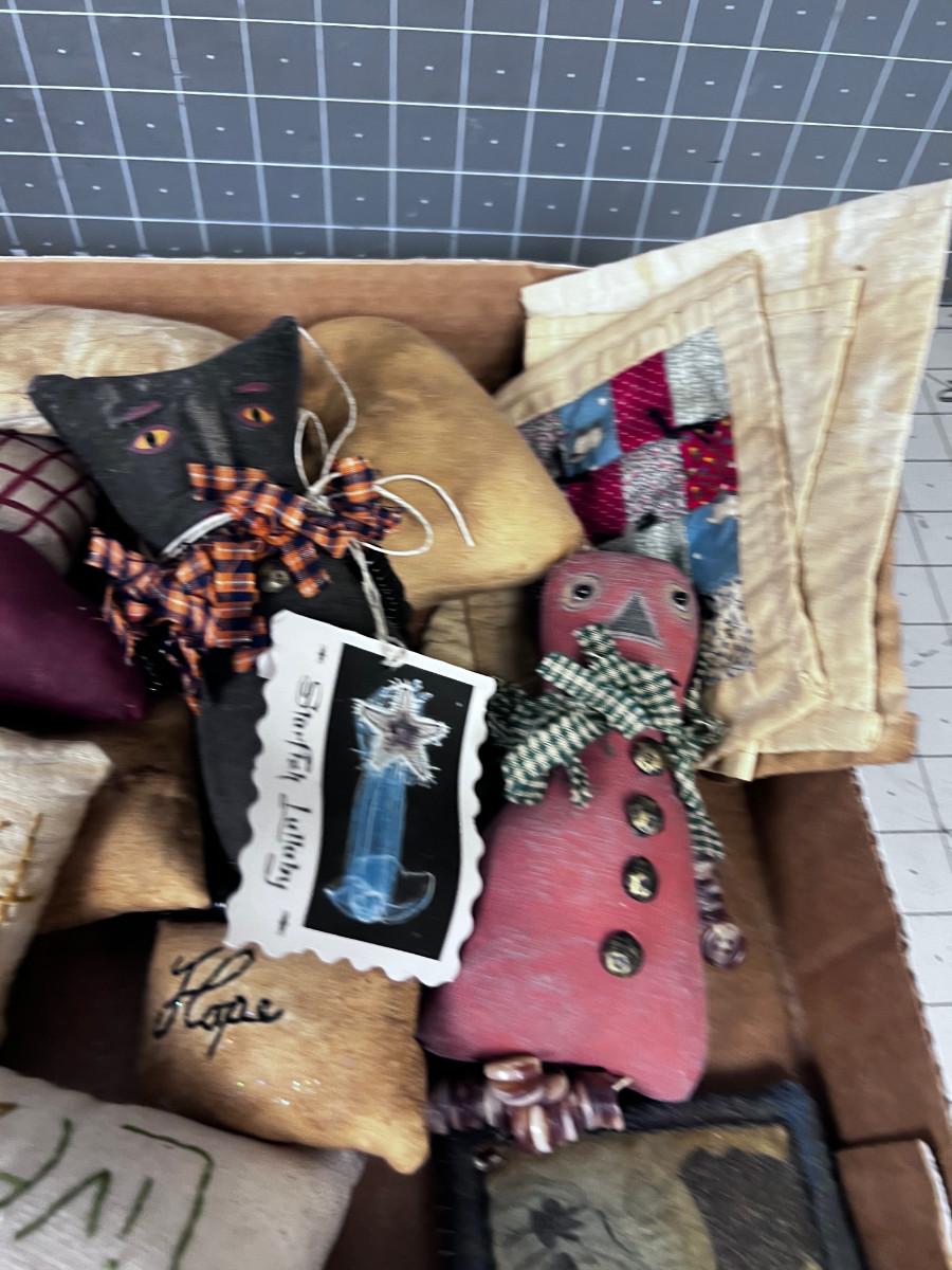 Pin Cushions, Quilted Squares, and Stuffed Animals.