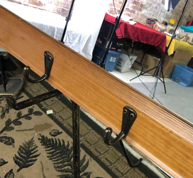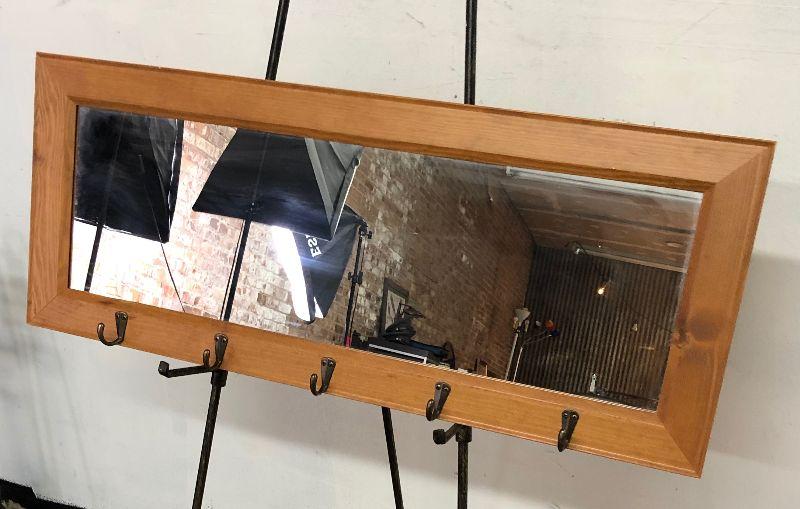 Here is a hall coat rack mirror in good condition...made of pine wood...