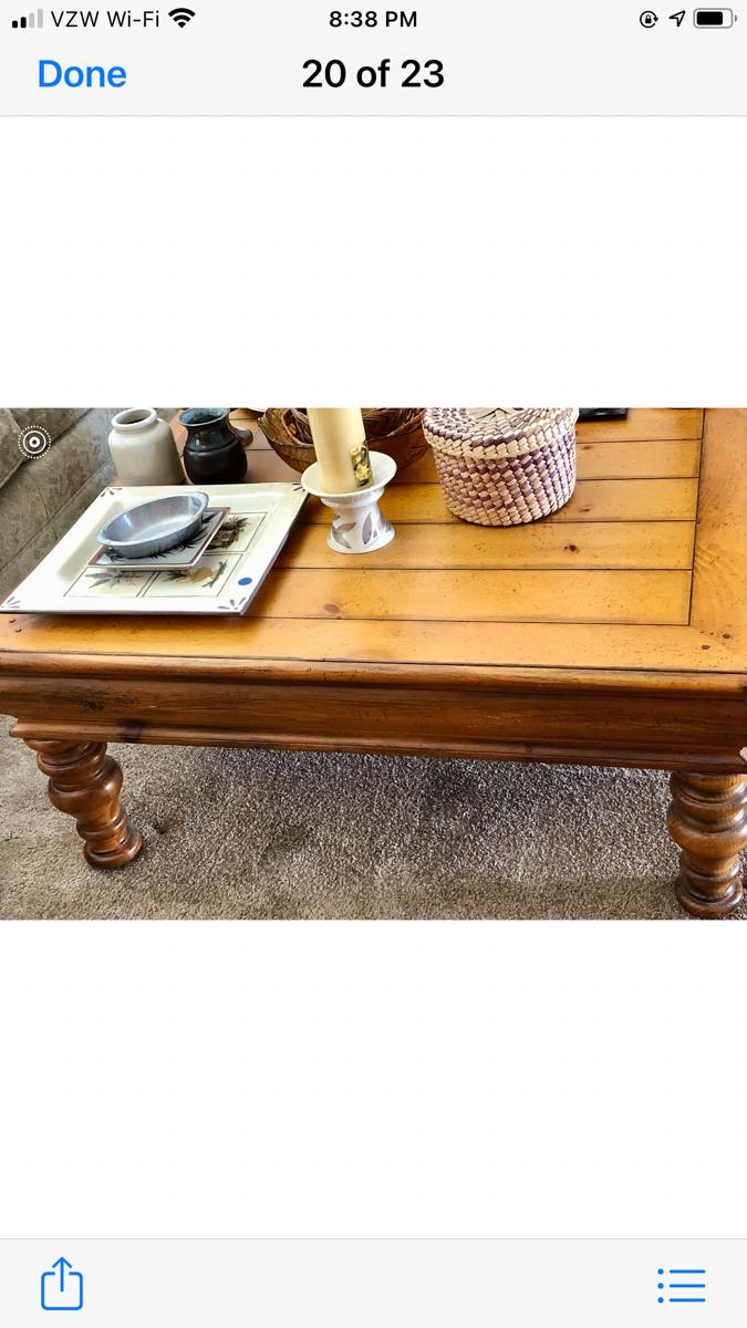 This large square coffee table is solid pine. Well built, from Drexel’s Pinehurst Collection. A classic, functional table. Also available are two lamp tables.