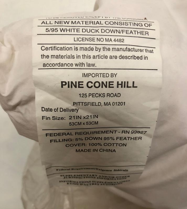 Imported by Pine Cone Hill 5/95 White Duck Down Feather filling...21 x 21"...Two pillows..
