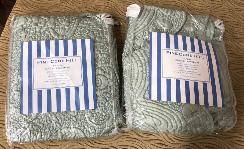Here are a pair of PINE CONE HILL FANNY ONE PILLOW SHAMS in Dusty Blue...Polyester and cotton...New..Retail price nearly $70...