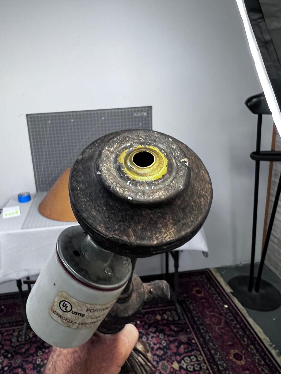 Needs some Repair. The Finial is Broke so the shade is not 100% . Good Looking. Heavy.