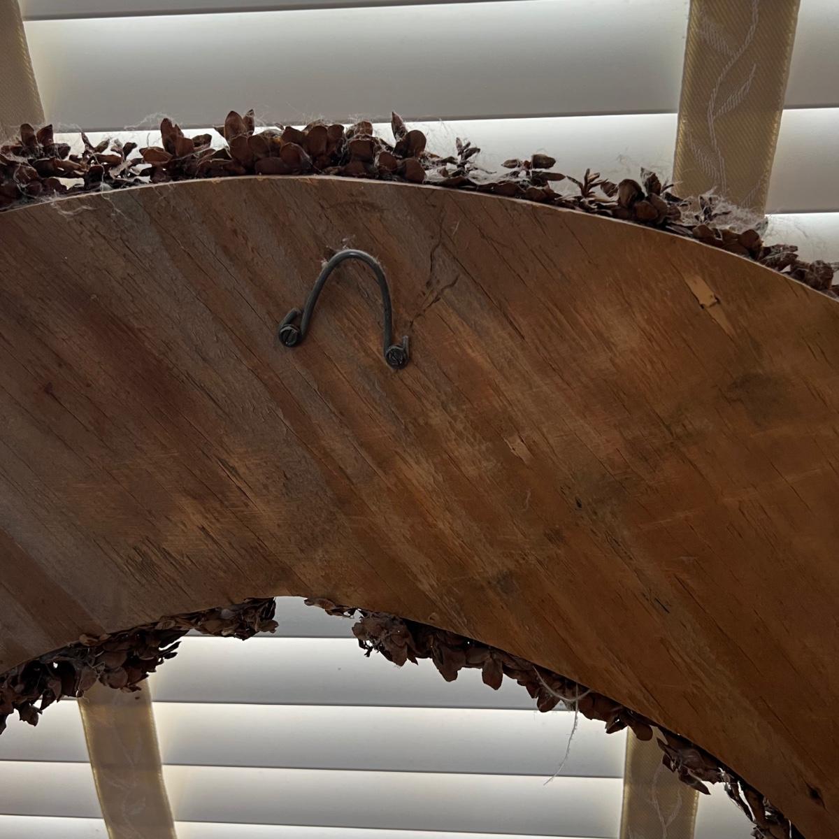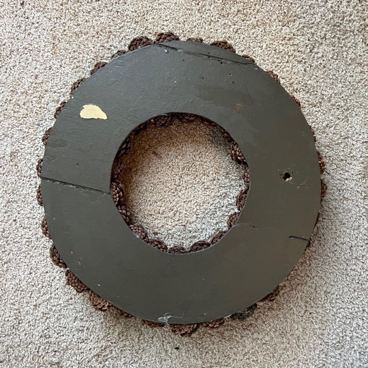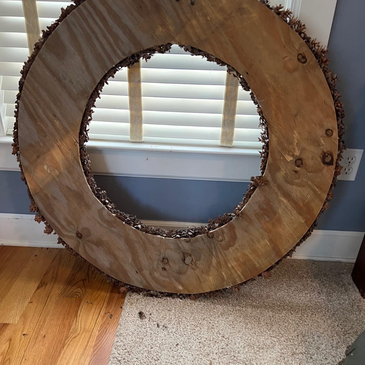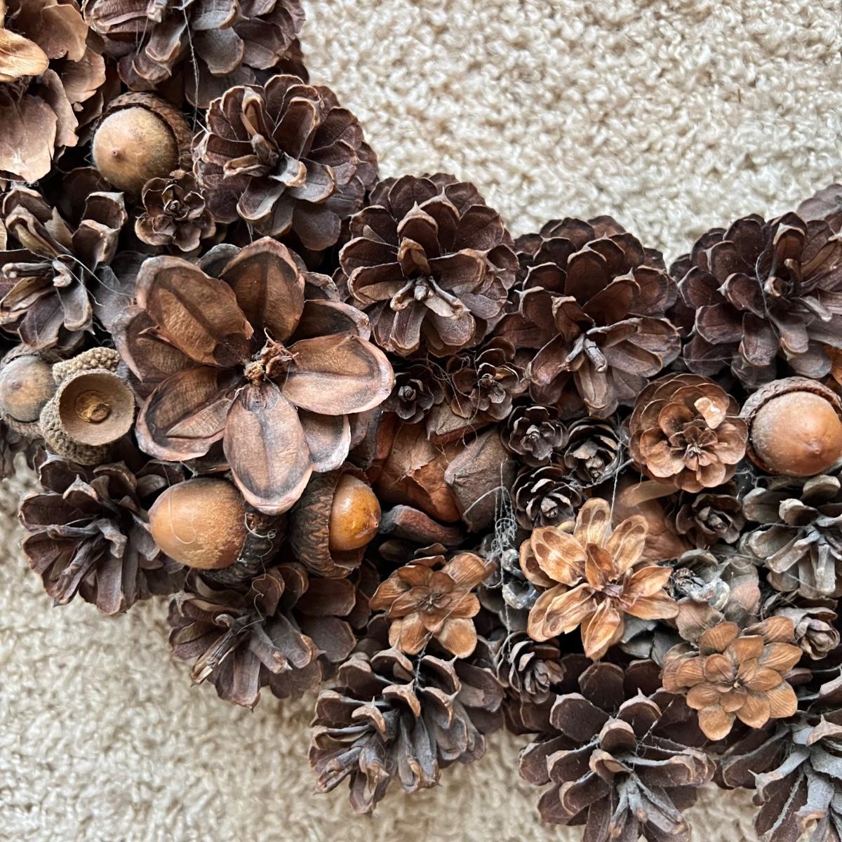 Charming rustic decor pine cone wreaths. A large wreath measures 36” D and the smaller one is 17”D. Arguably perfect for year-round enjoyment. They are both in good condition and in need of some dusting but otherwise lovely. Shipping available. Shipping art can be costly. We suggest calling our local UPS with dimensions and getting an estimate before bidding: (828) 252-6930.