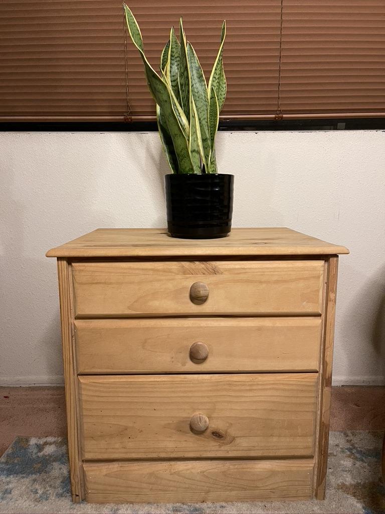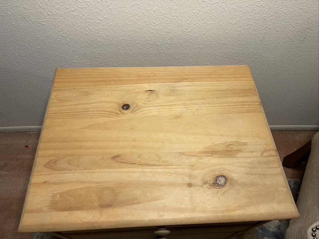 Pine night stand in great condition. Can be easily stained for a DIY project.