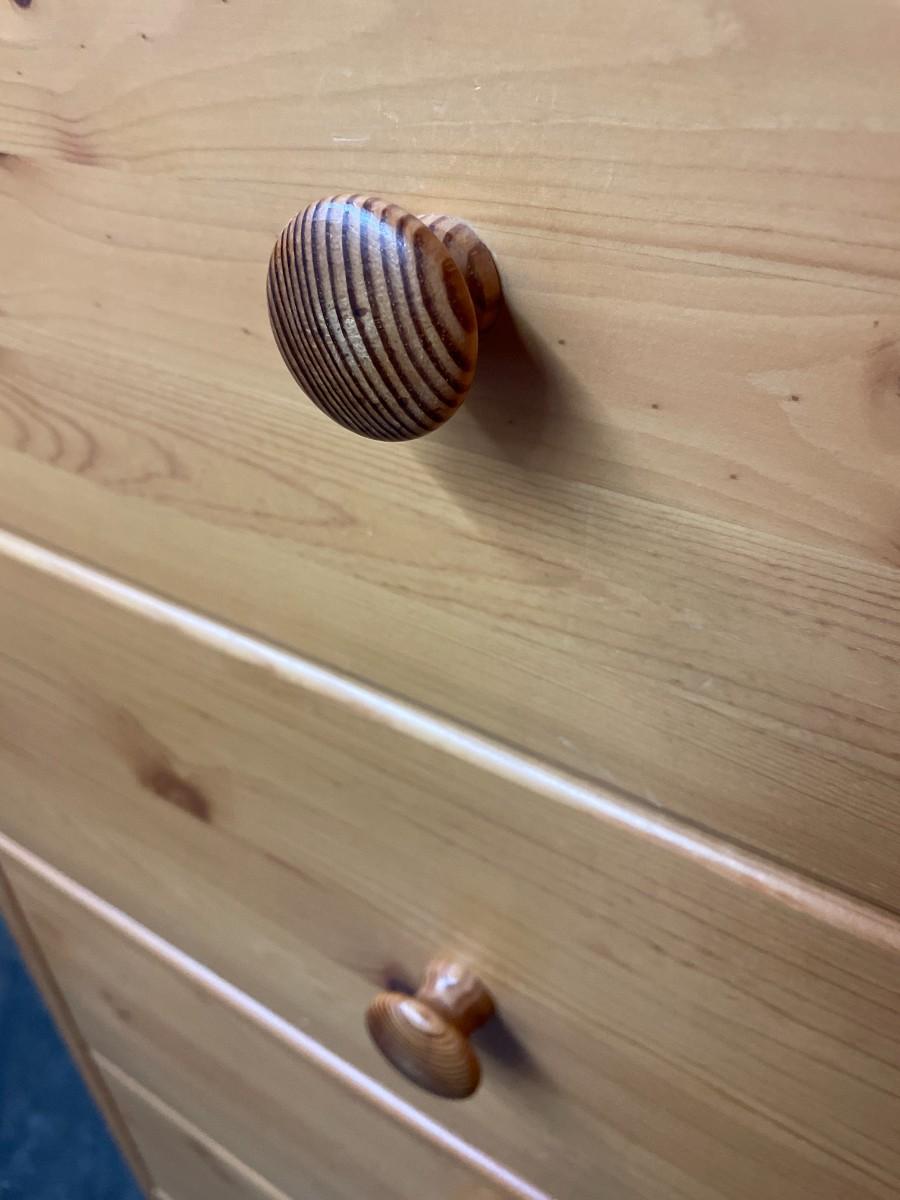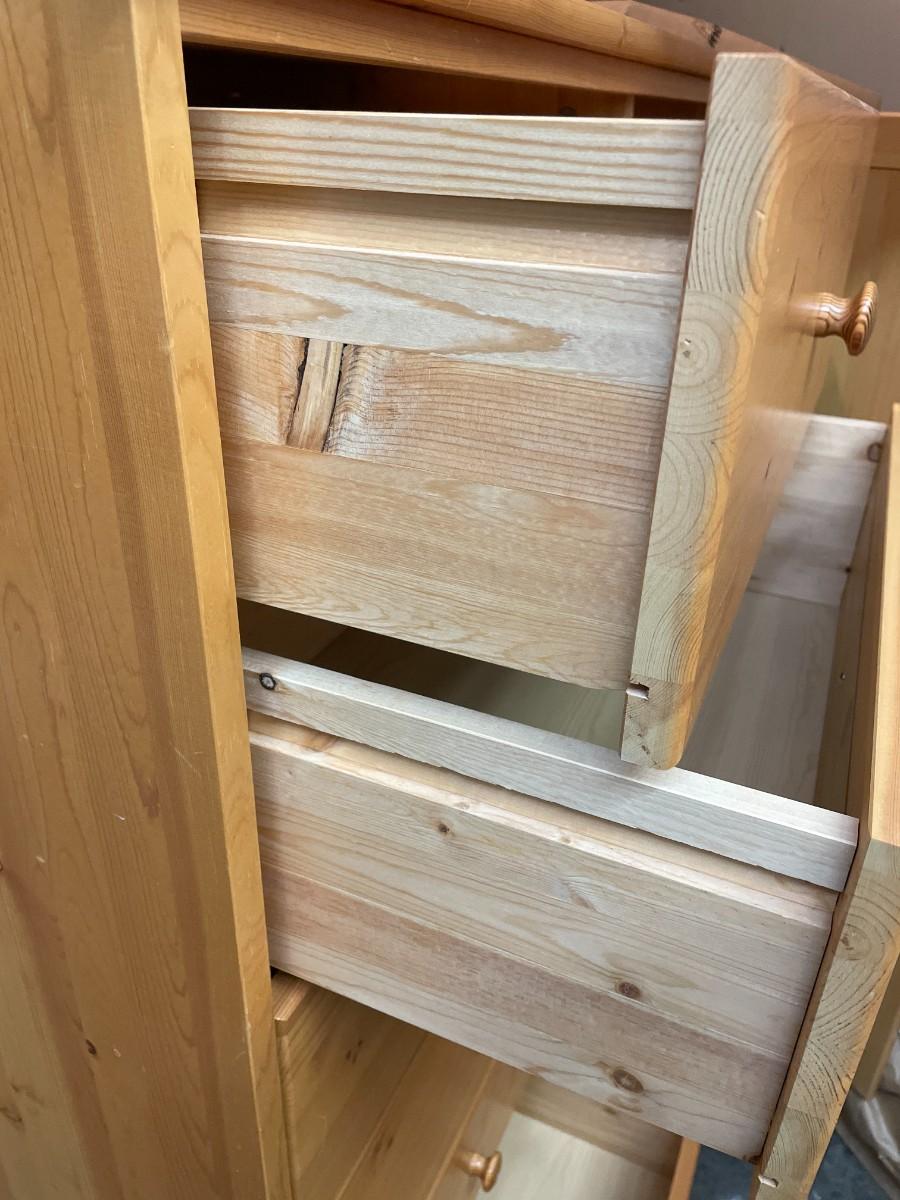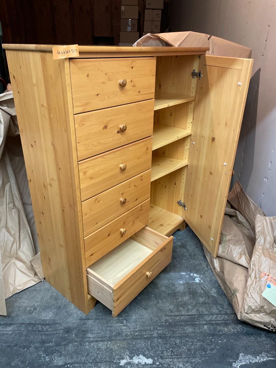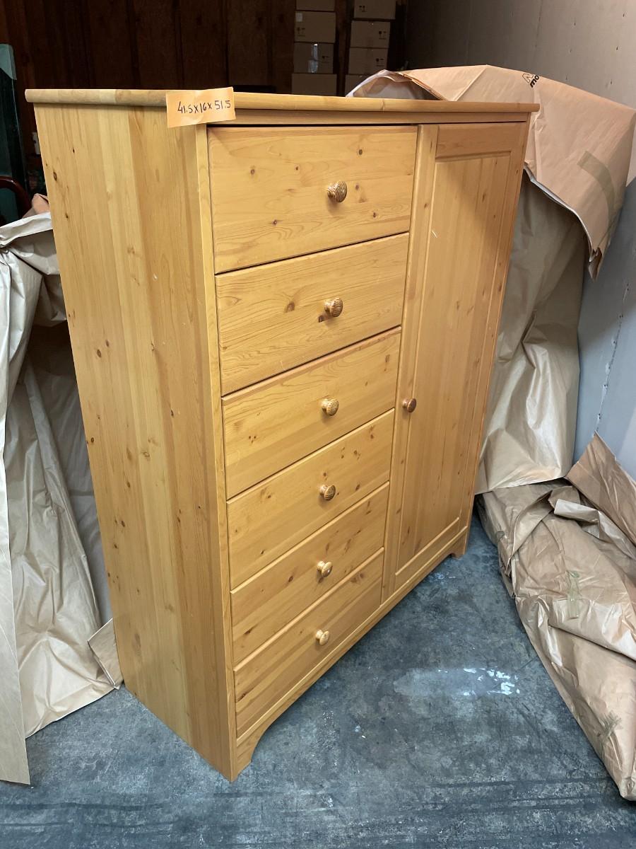 6 drawers, side door with 3 interior shelves. Sturdy, well built. Some marks, shown. 41x16x51
