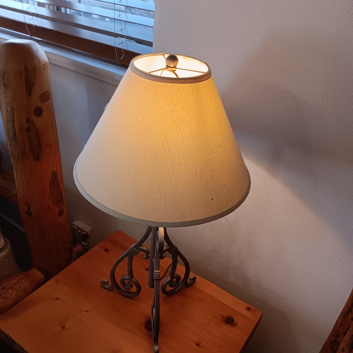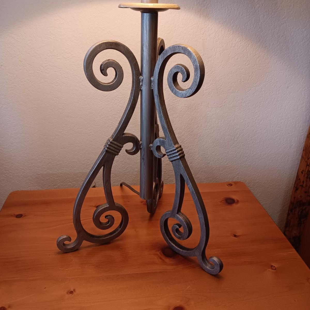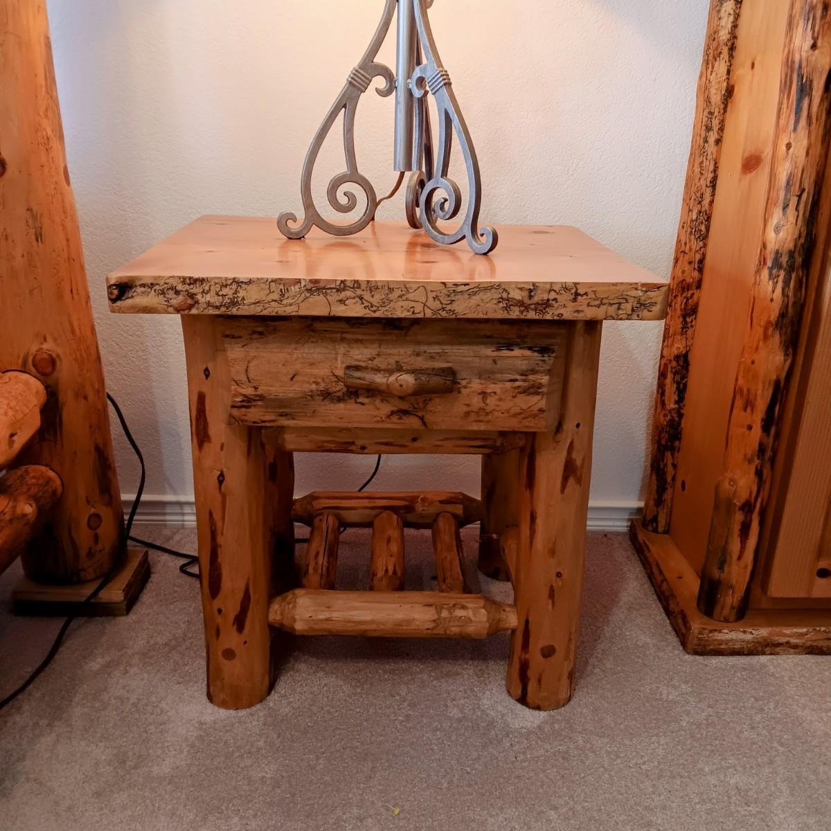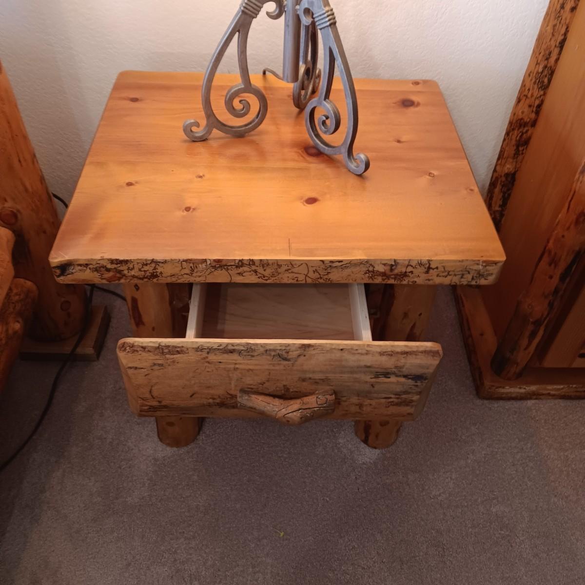 PINE LOG NIGHT STAND WITH 1 DRAWER AND IRON BASE LAMP