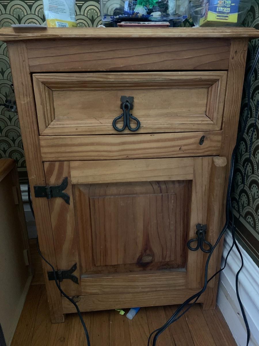 Pine Nightstand with 1 Drawer and 1 Door and iron hardware