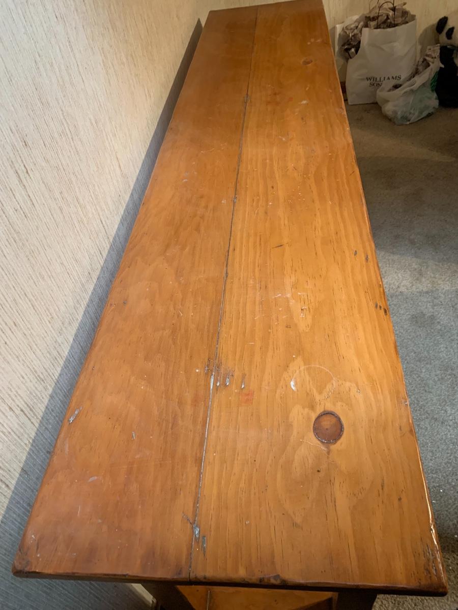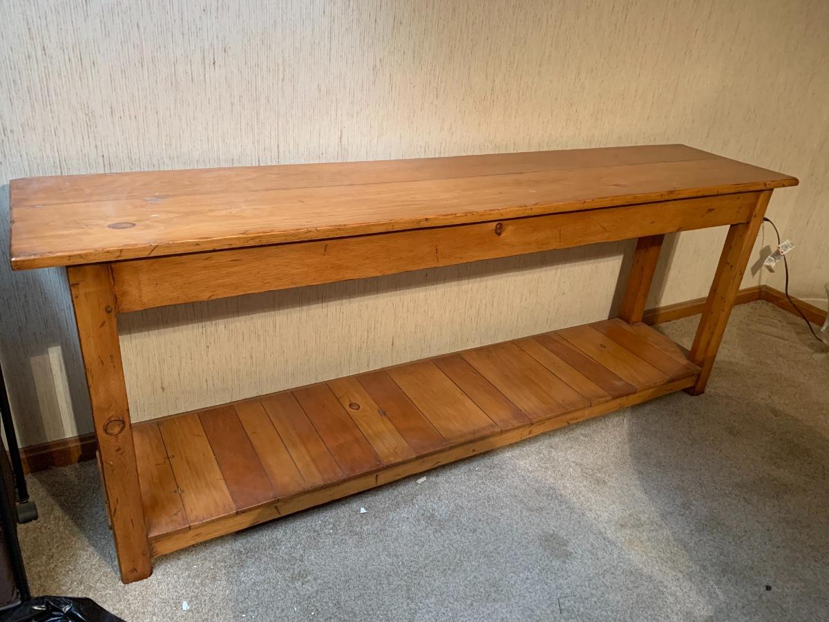 Pine sofa table matching Lot#31. In good condition, (6 feet in length, 27 1/2 inches in height, 16 inches in width)