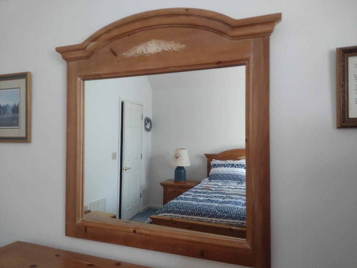 Pine Wood Framed Wall Mirror. Upstairs item. Please bring assistance to remove safely.