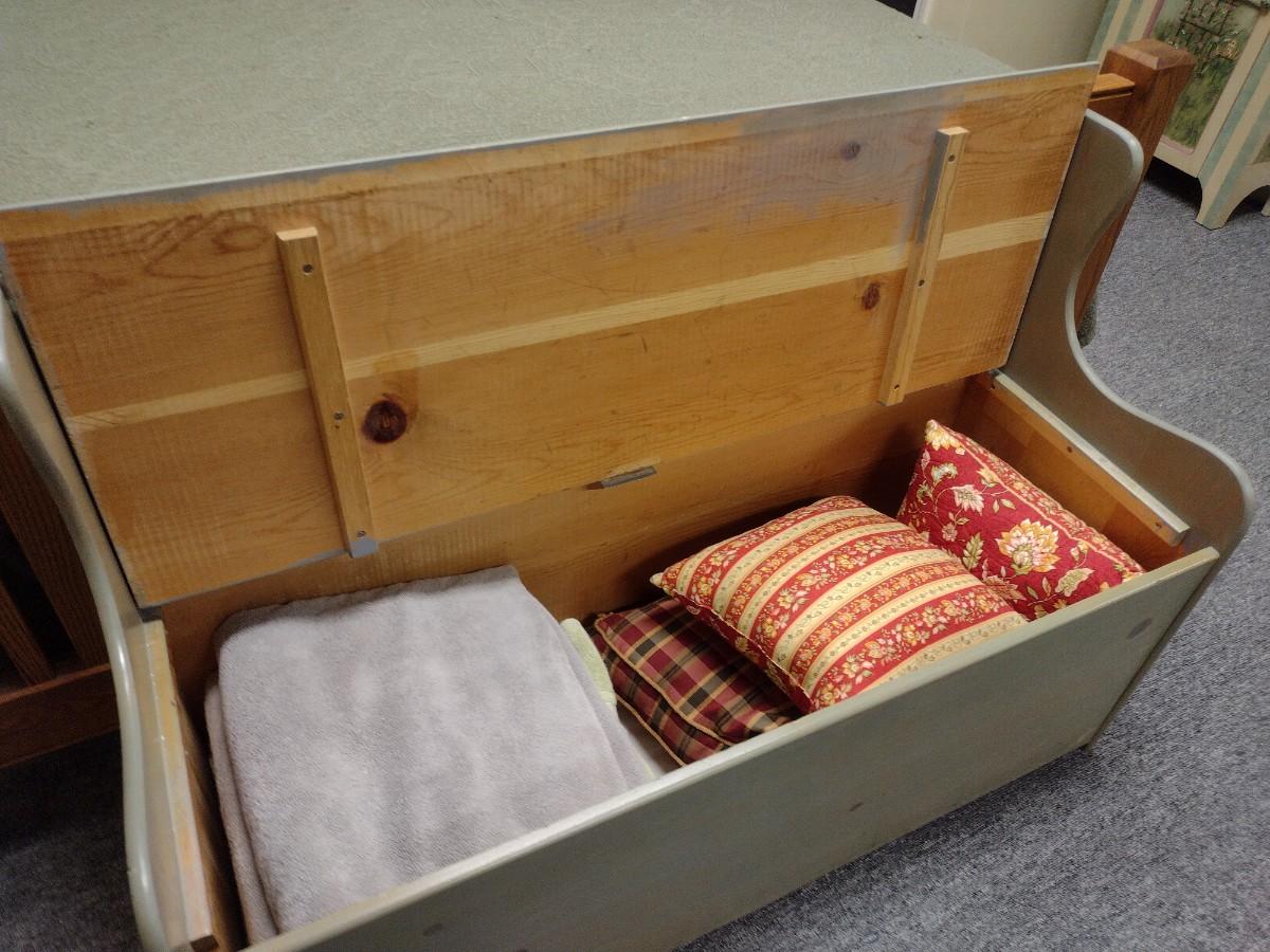 Pine Wood Sitting Bench with Storage Downstairs item bring help to remove from home.