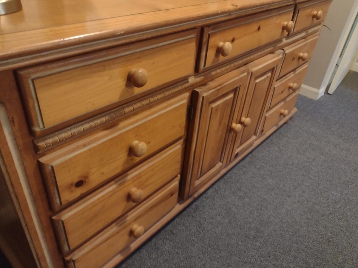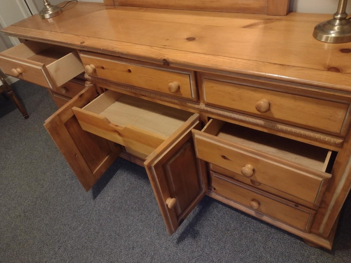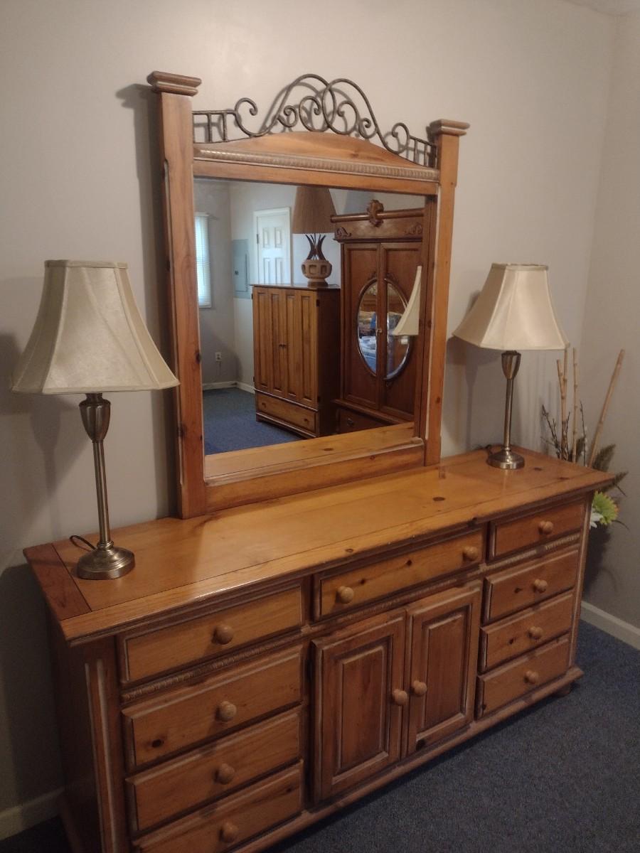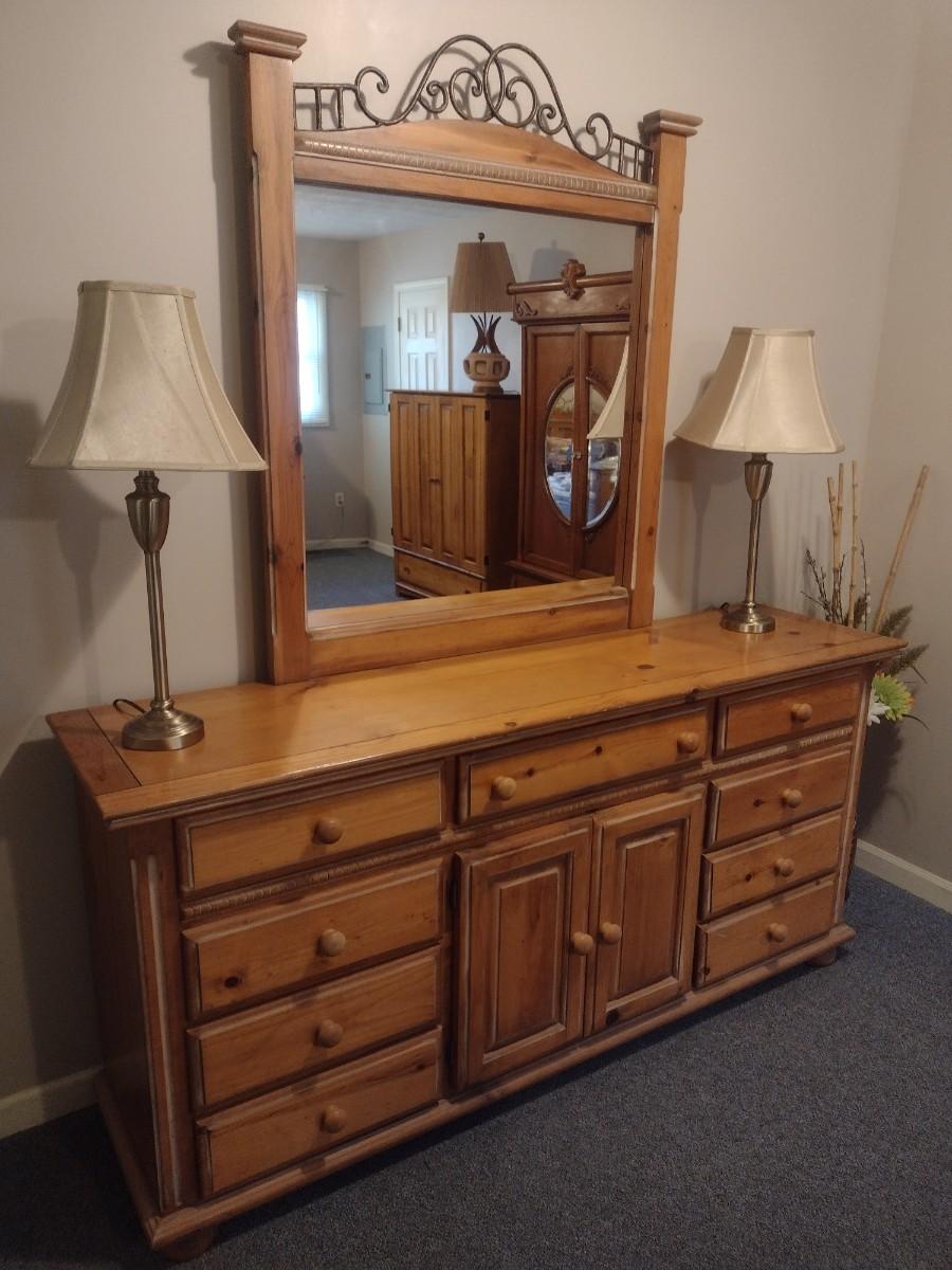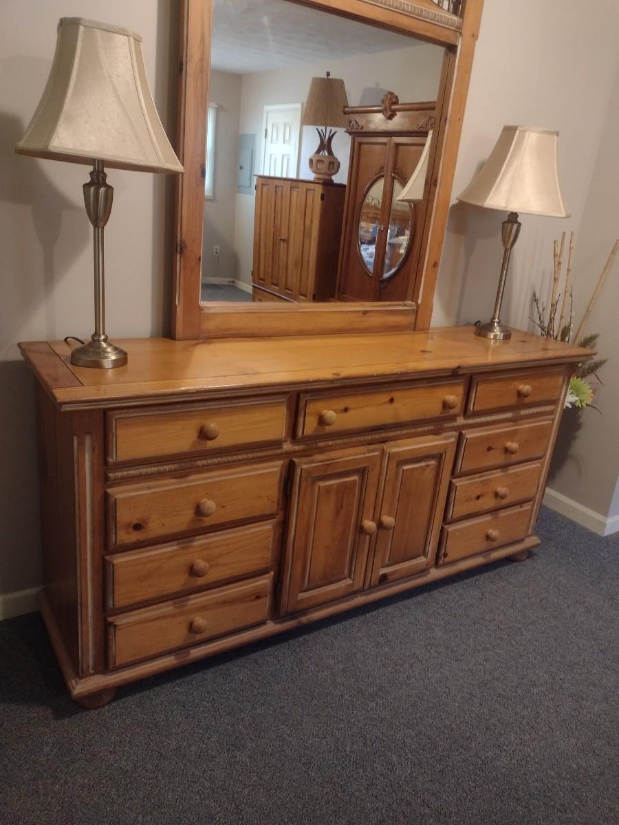 Pine Wood Stretch Dresser with Mirror (Lamps Excluded)