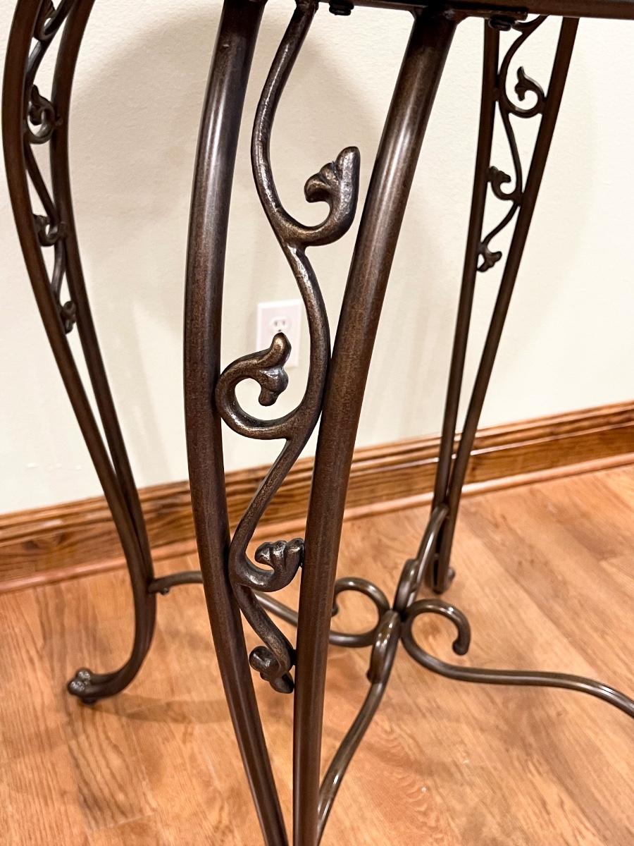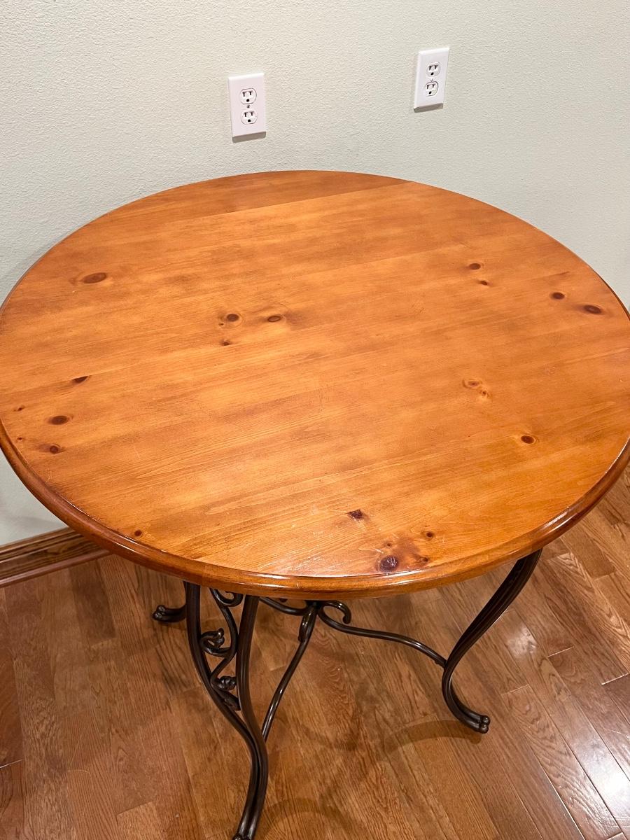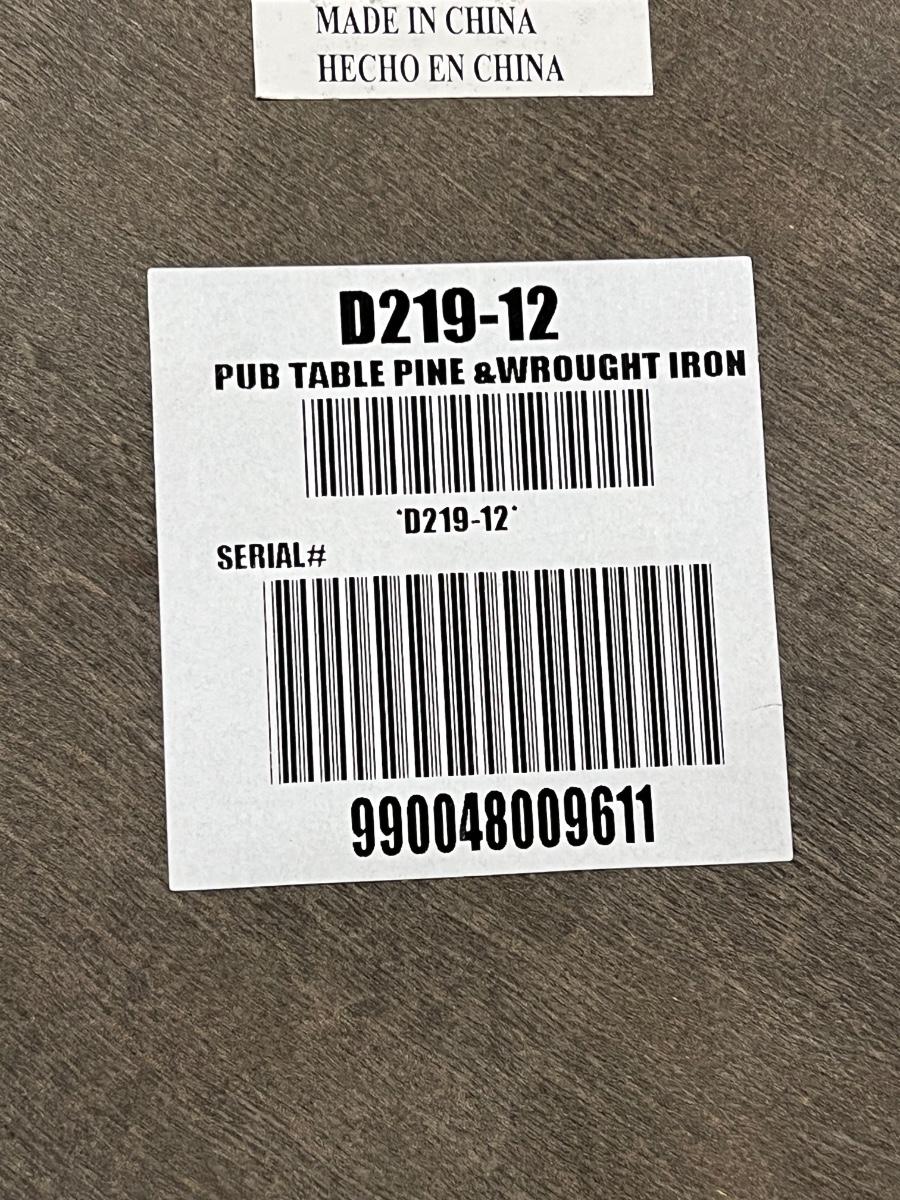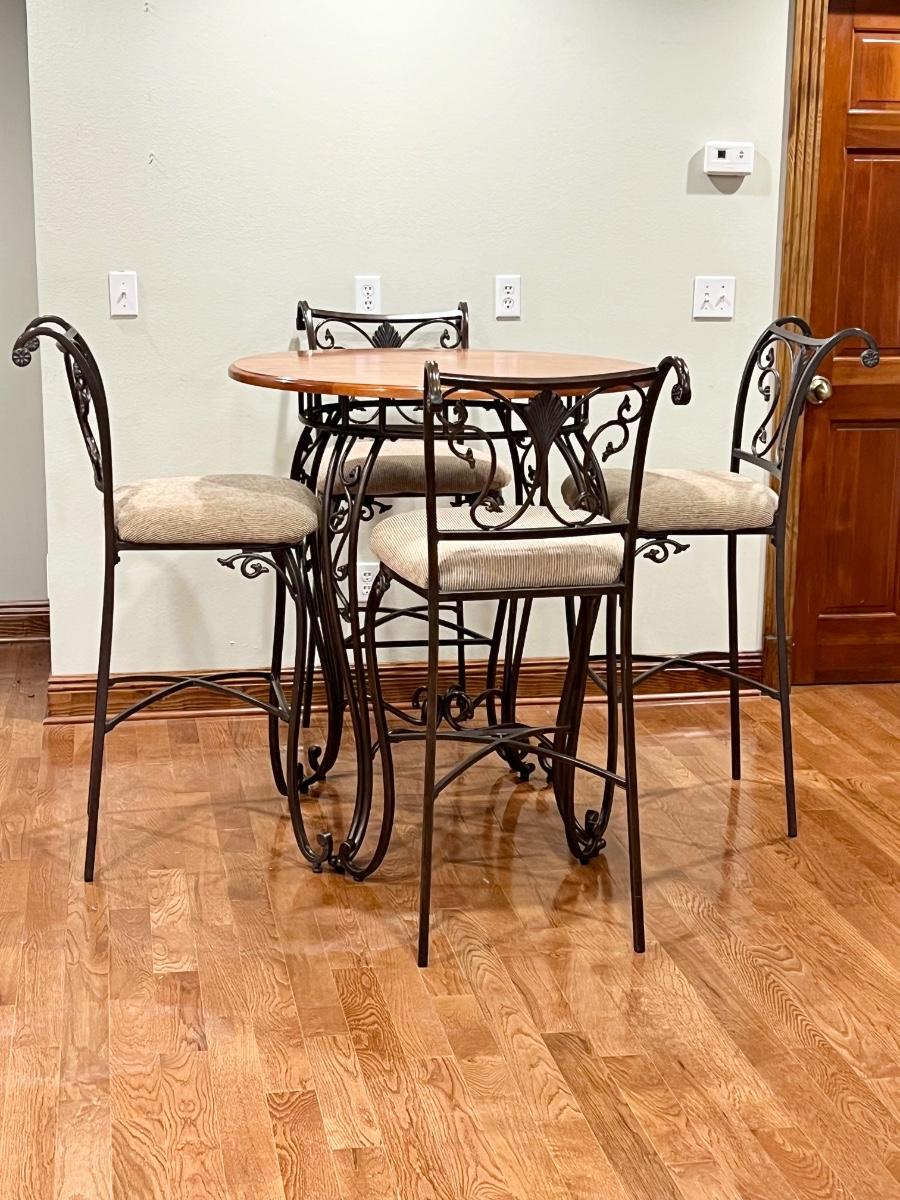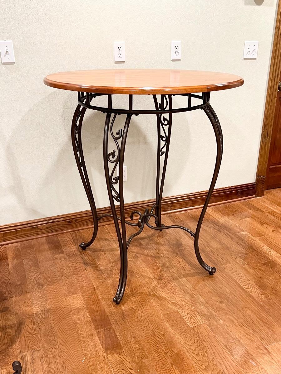 ASHLEY ~ Pine & Wrought Iron Style Iron Pub Table & Four (4) Chairs