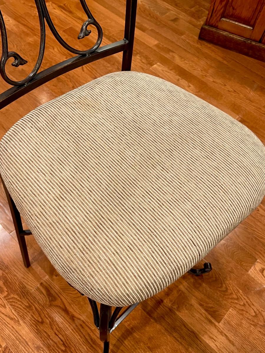 Table has some weight to it, the chairs are light metal ~ No brand ~ Upholstered seats have been sanitized, deodorized, & disinfected ~ Table = 42.5” H x 38” Round ~ Chairs = 46.25” H x 22.5” W x 25” D ~ Floor to seat 32.5” H