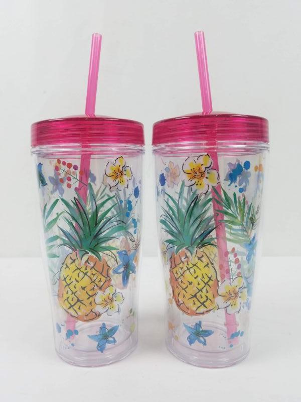 Pineapple Cups with Lids & Straws - Double Walled - New