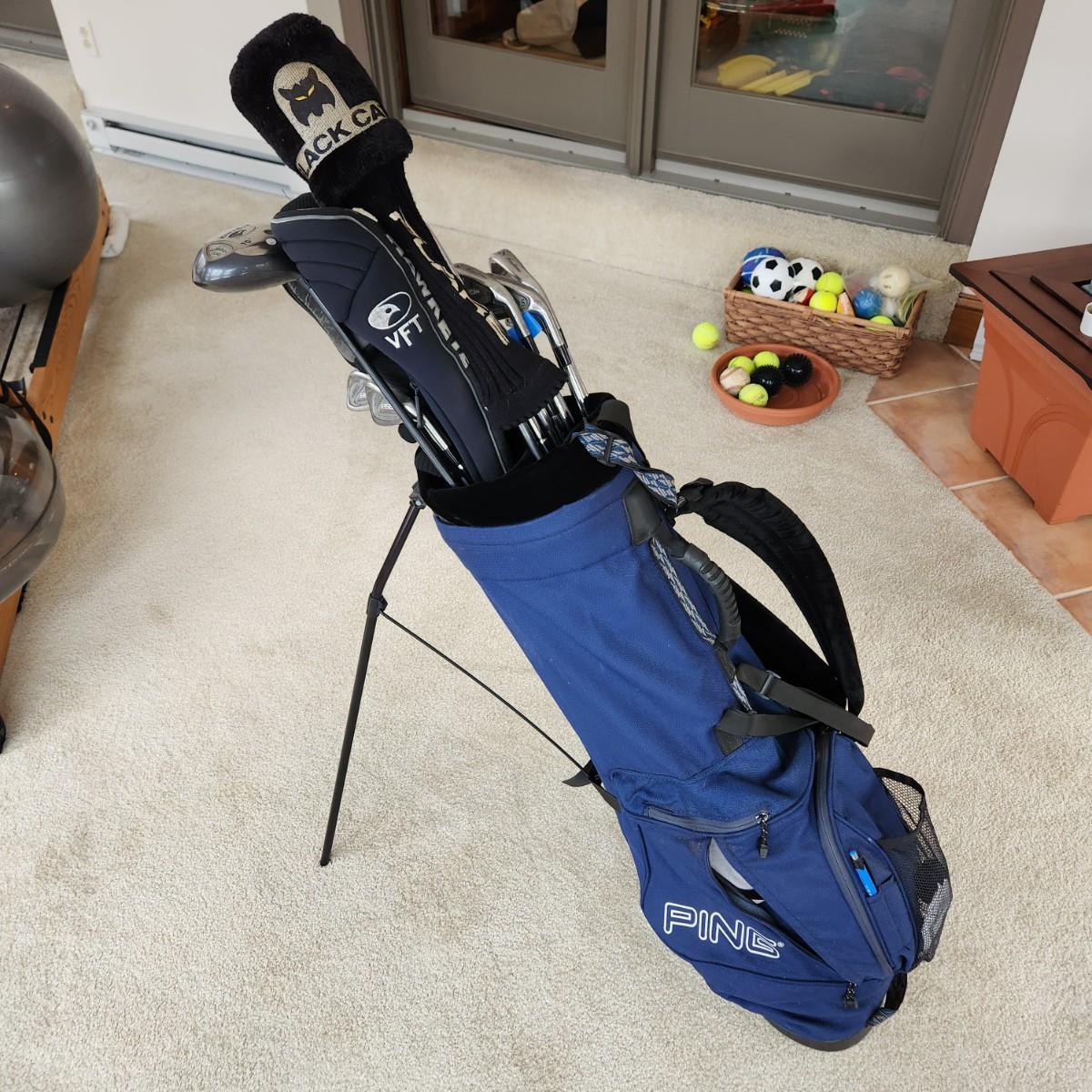 Ping Golf Bag w Callaway Big Bertha Hawk Eye Driver Lynx Boom Boom Adams Tight Lies Cleveland Putter Tommy Armour 855's Silver Scot Irons