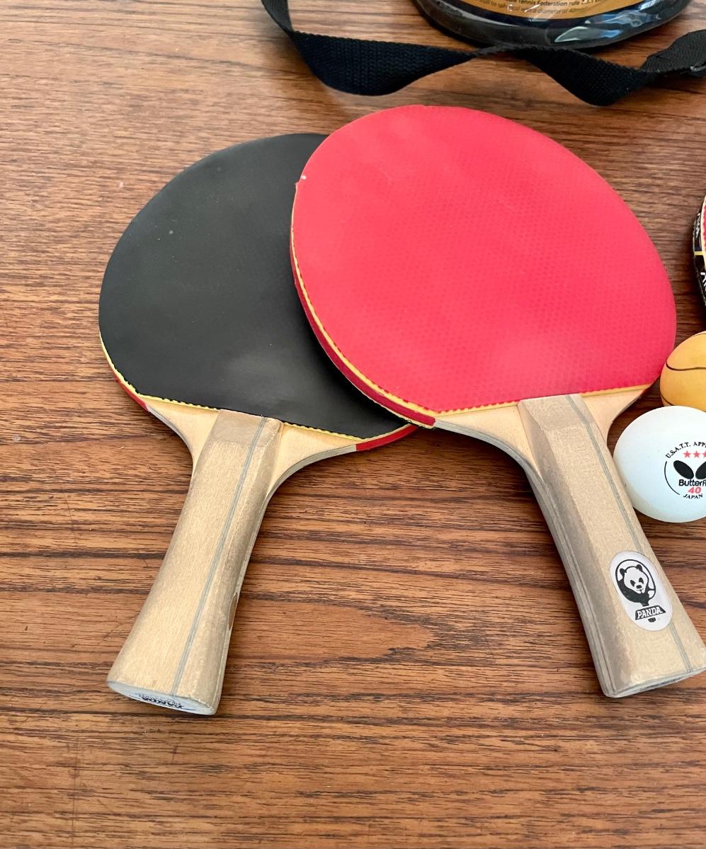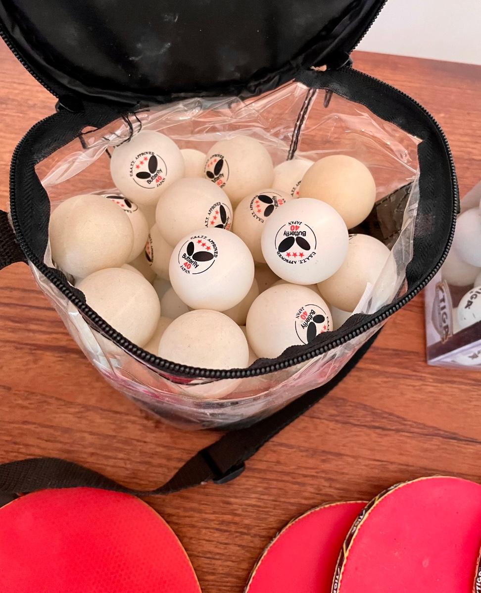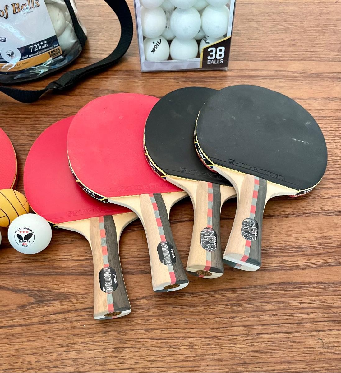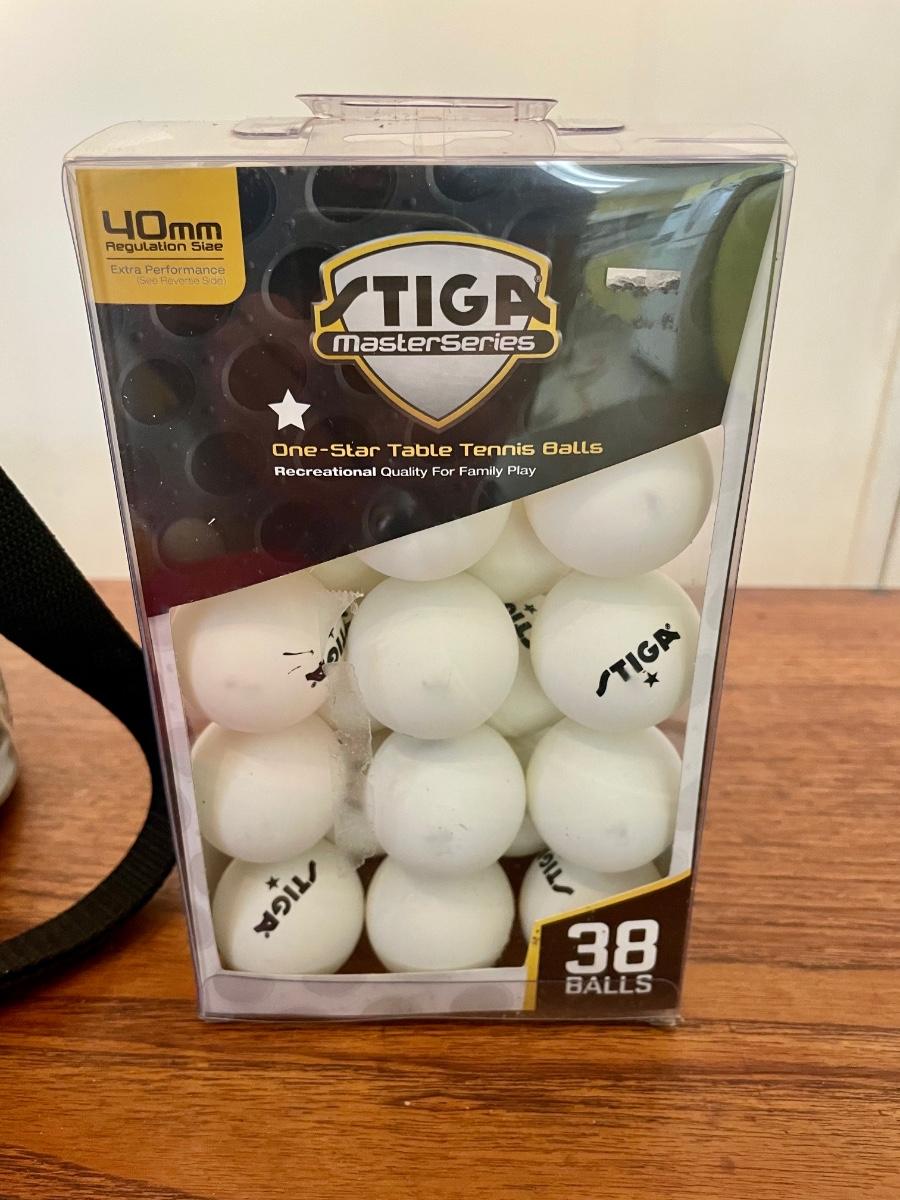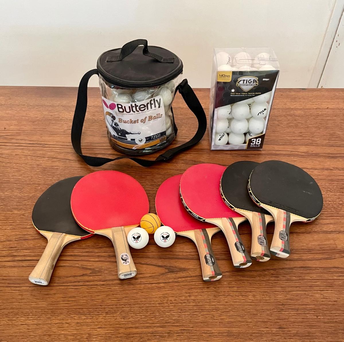 Includes 6 paddles, approx 100 ping pong balls. Most items made by STIGA, other balls made by Butterfly.
