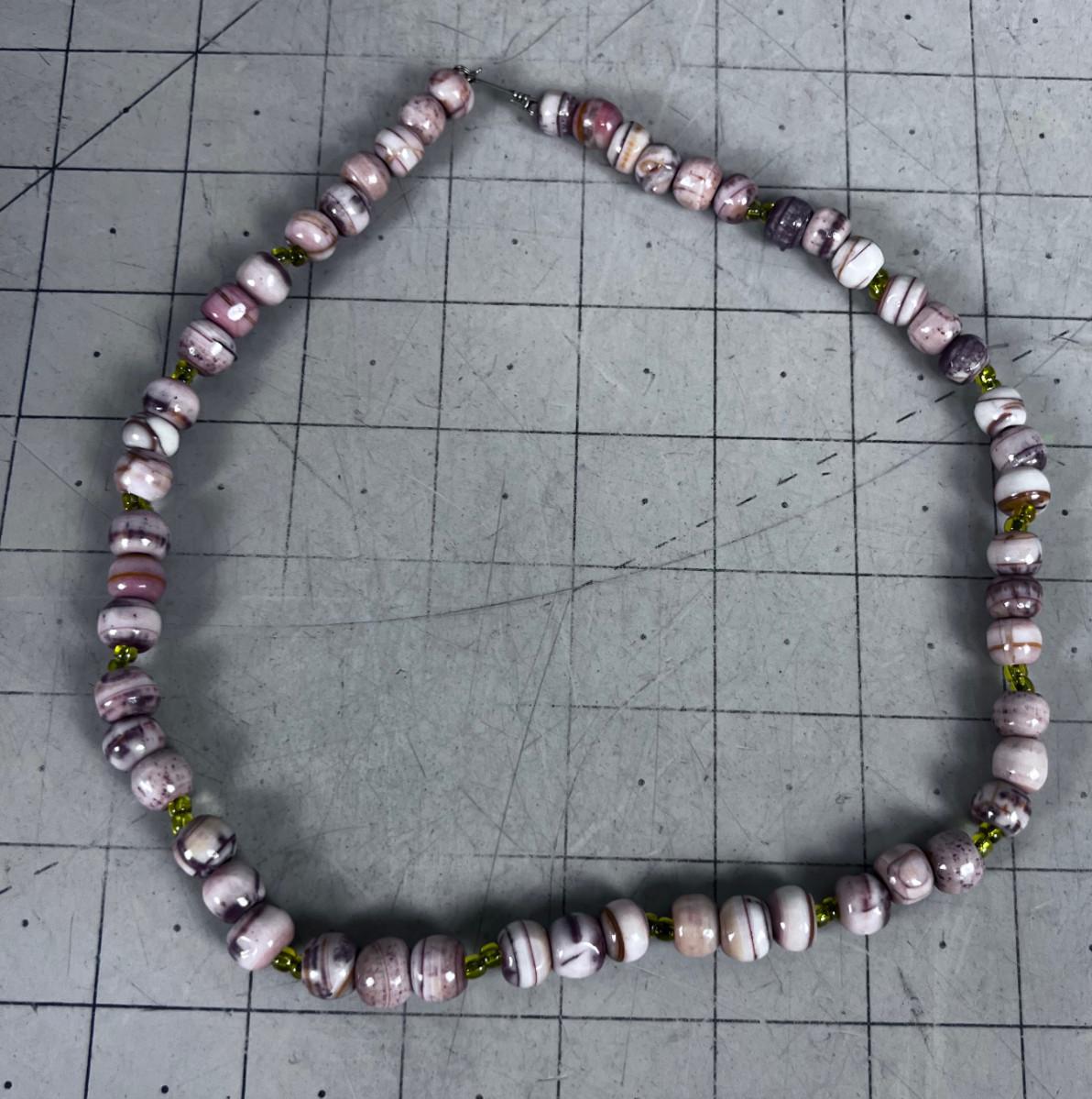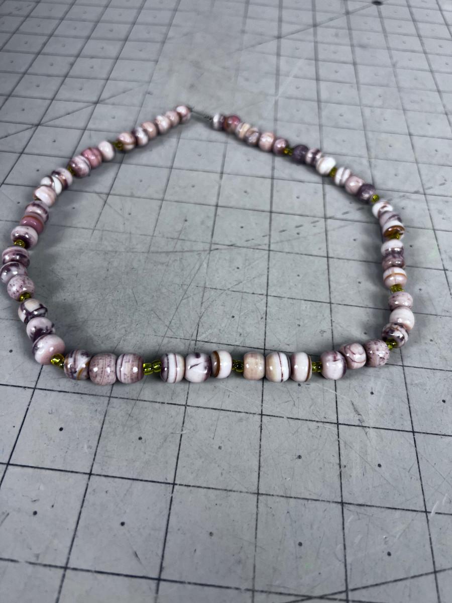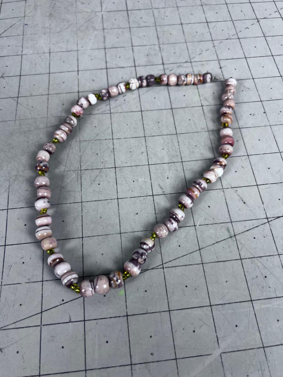 Pink and Brown Stone Necklace with Yellow Glass Bead