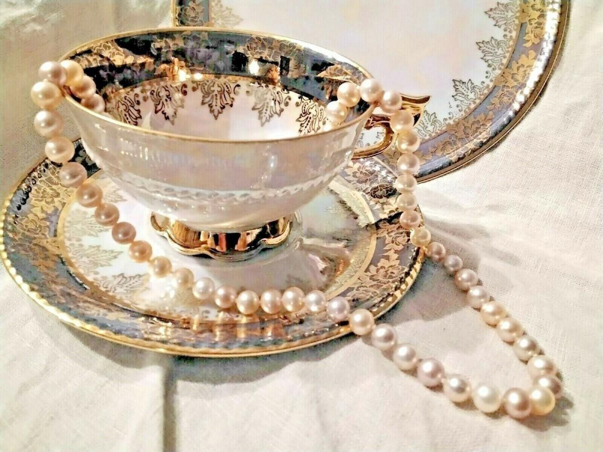 Pink and Lavender Pastel South Sea Natural 18" 7mm Pearl Necklace. 14k gold clasp (marked 585 which is a tad over 14k in German) This necklace is just exquisitely beautiful. It's so perfect for any spring day or evening. The colors just make you feel so happy looking at the beauty of their high luster shine. I see them as the perfect Easter set. That's just me though *wink*