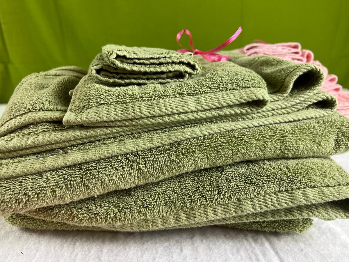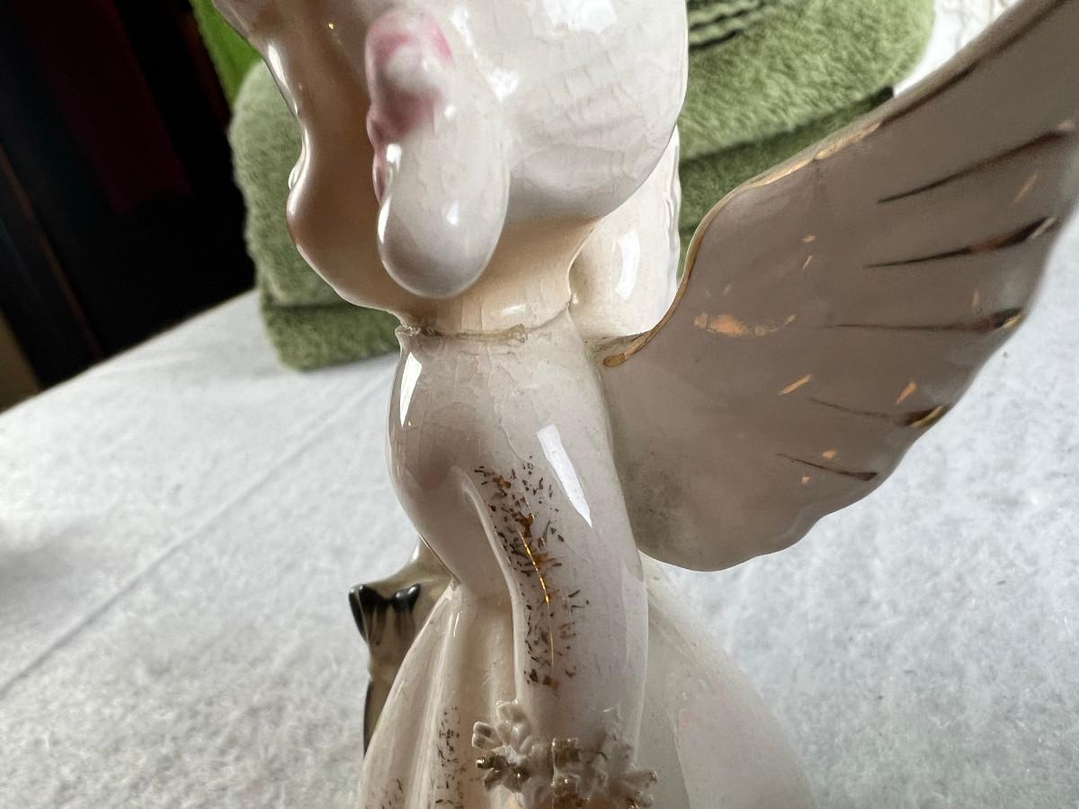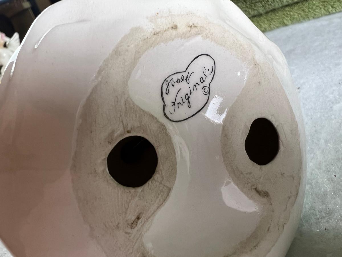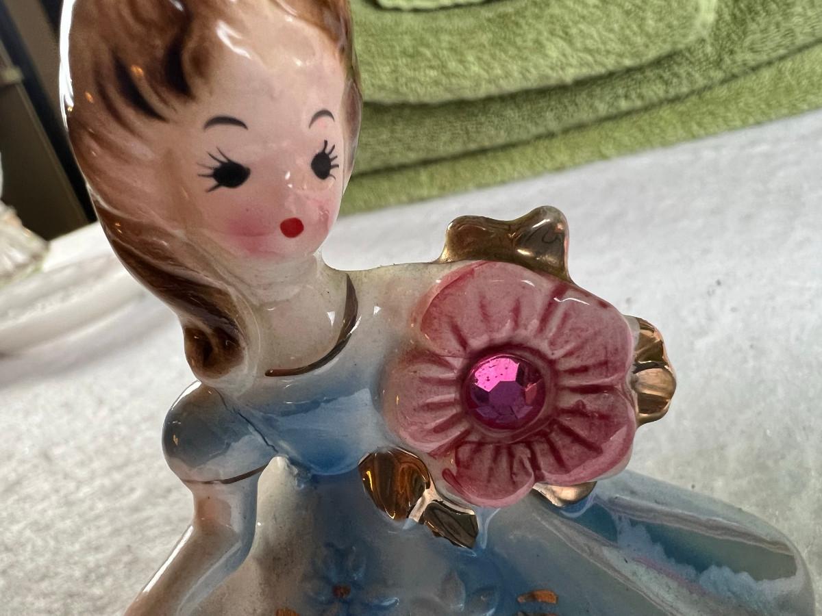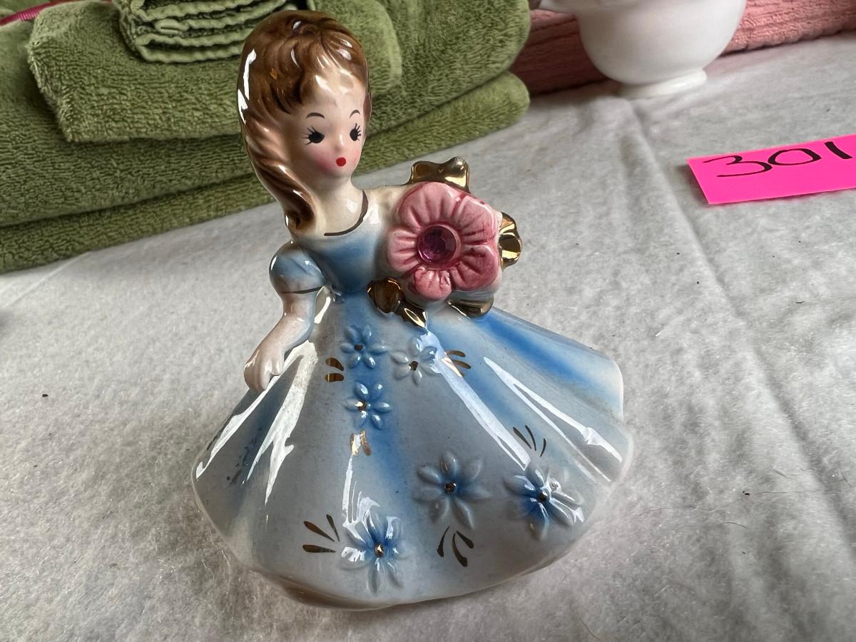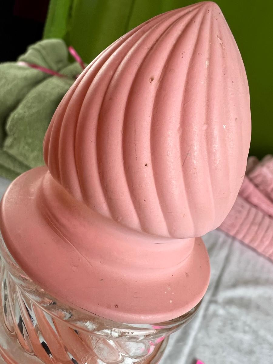Vintage tall pink glass with lid 10.5" x 2" Marly on bottom, pink and white bowl 4" x 6.5", April Angel neck glued, white dish with 3 women 6.5", large angel Josef original 5" x 3.5", medium angel 4" x 2.5", small angel 3" x 2" 2 sets of towels 1. Green Charisma Luxury (2 bath, 1 hand, 2 wash) 2. Pink Colormate supreme field Crest (1 bath, 2 hand, 2 wash)
