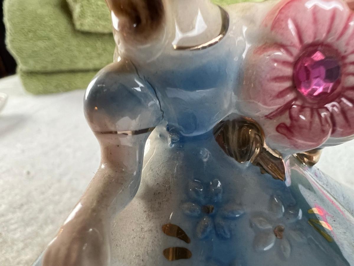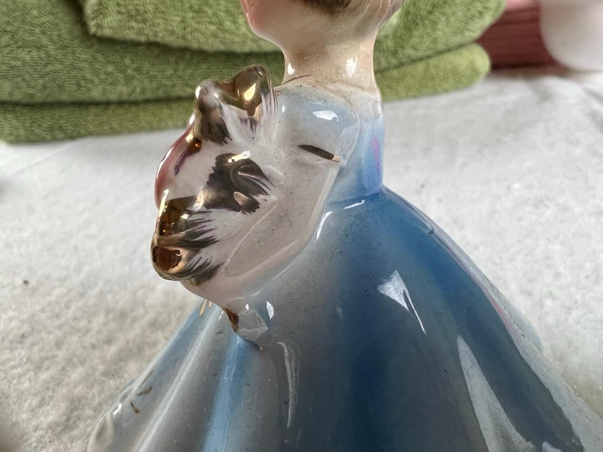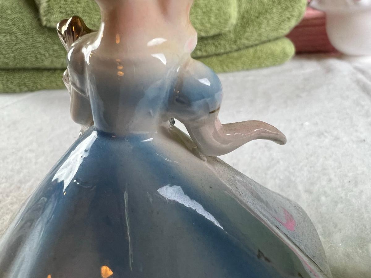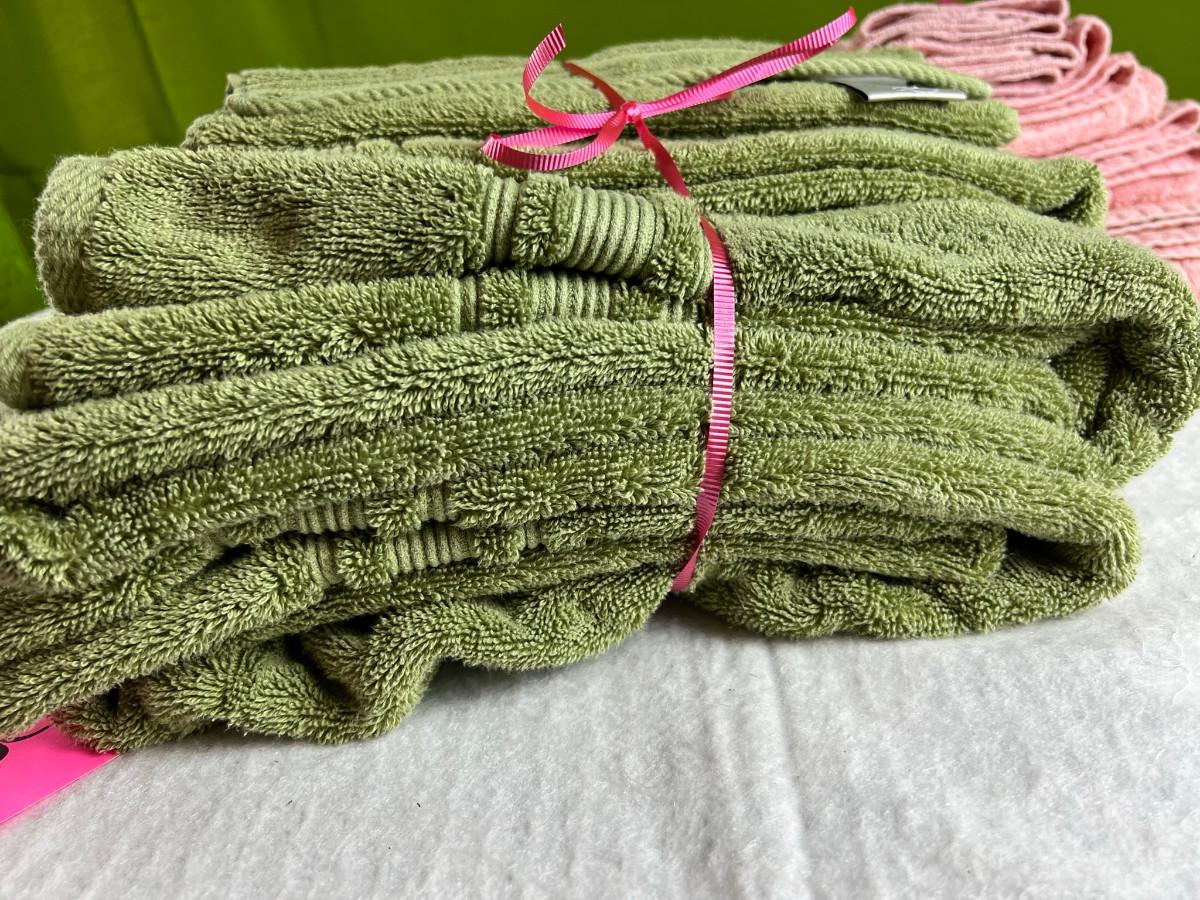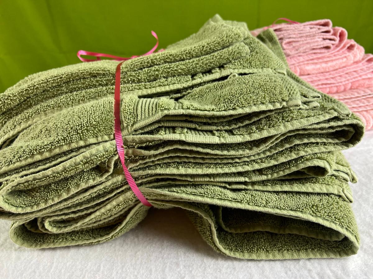Vintage tall pink glass with lid 10.5" x 2" Marly on bottom, pink and white bowl 4" x 6.5", April Angel neck glued, white dish with 3 women 6.5", large angel Josef original 5" x 3.5", medium angel 4" x 2.5", small angel 3" x 2" 2 sets of towels 1. Green Charisma Luxury (2 bath, 1 hand, 2 wash) 2. Pink Colormate supreme field Crest (1 bath, 2 hand, 2 wash)