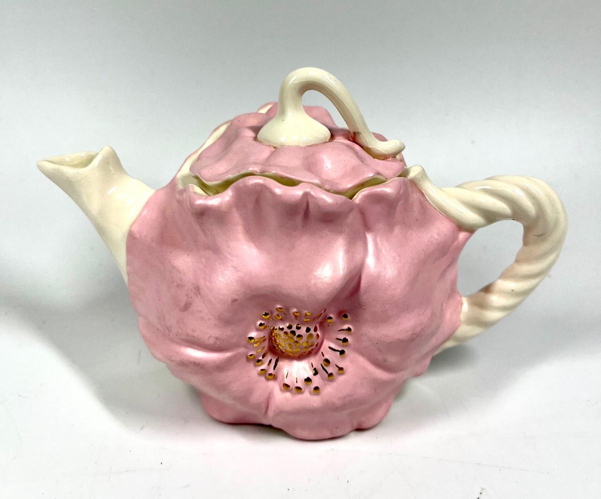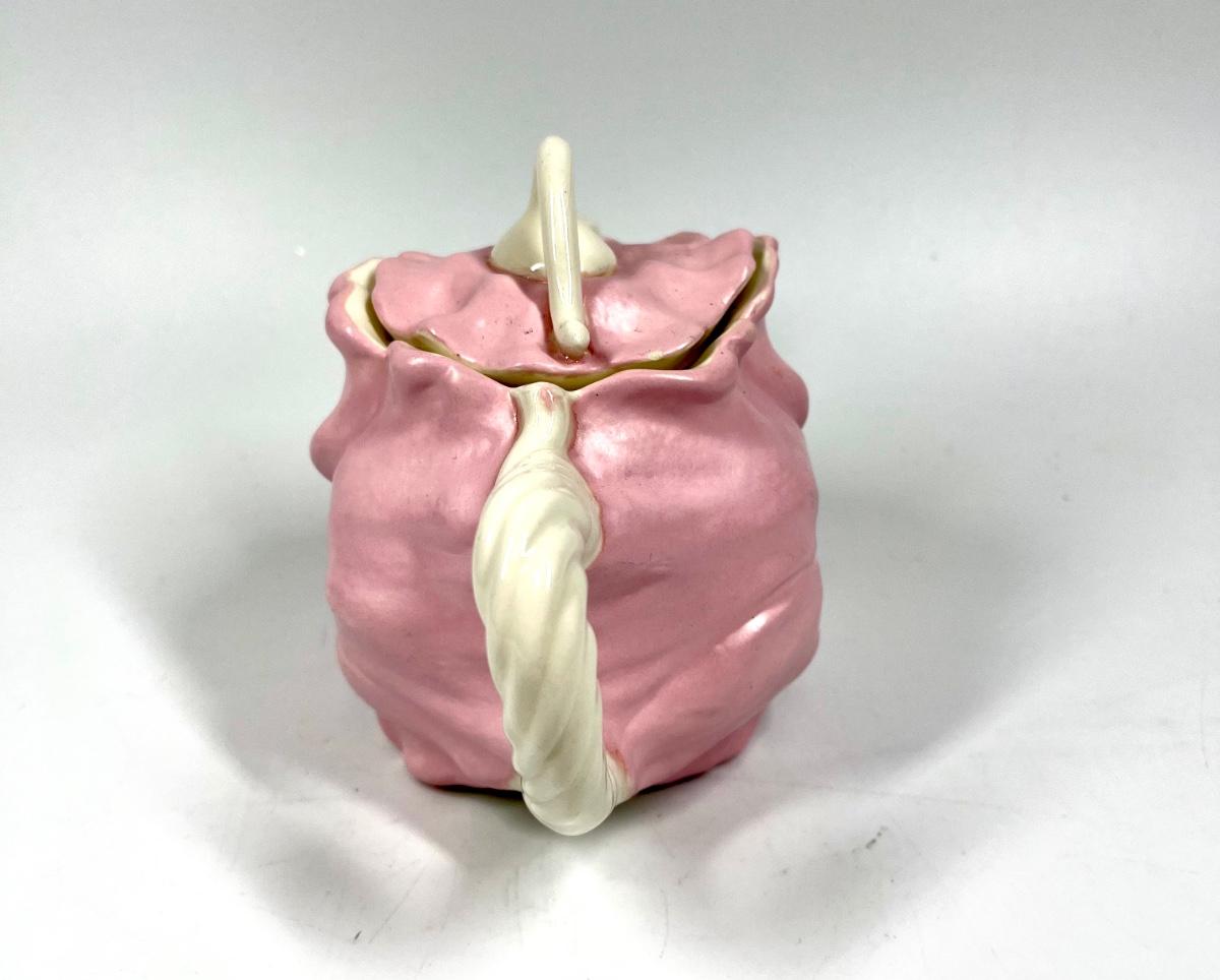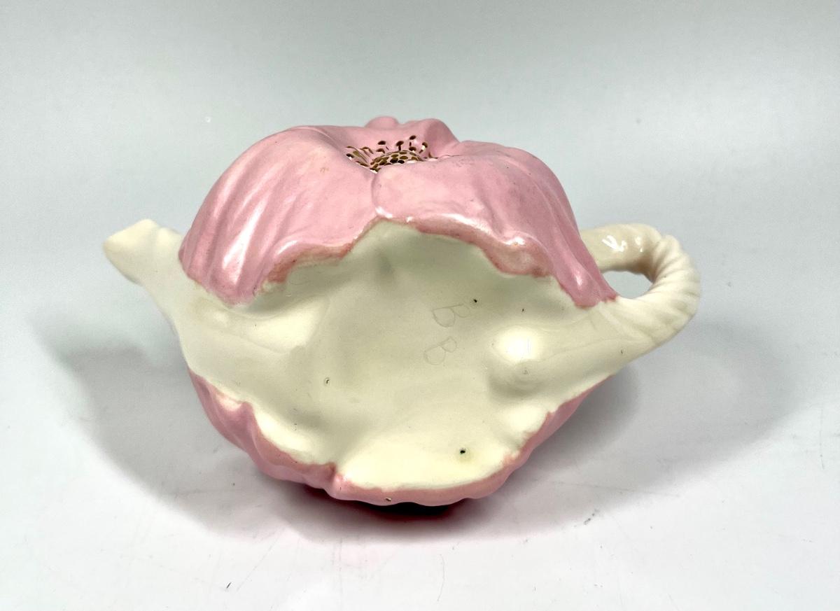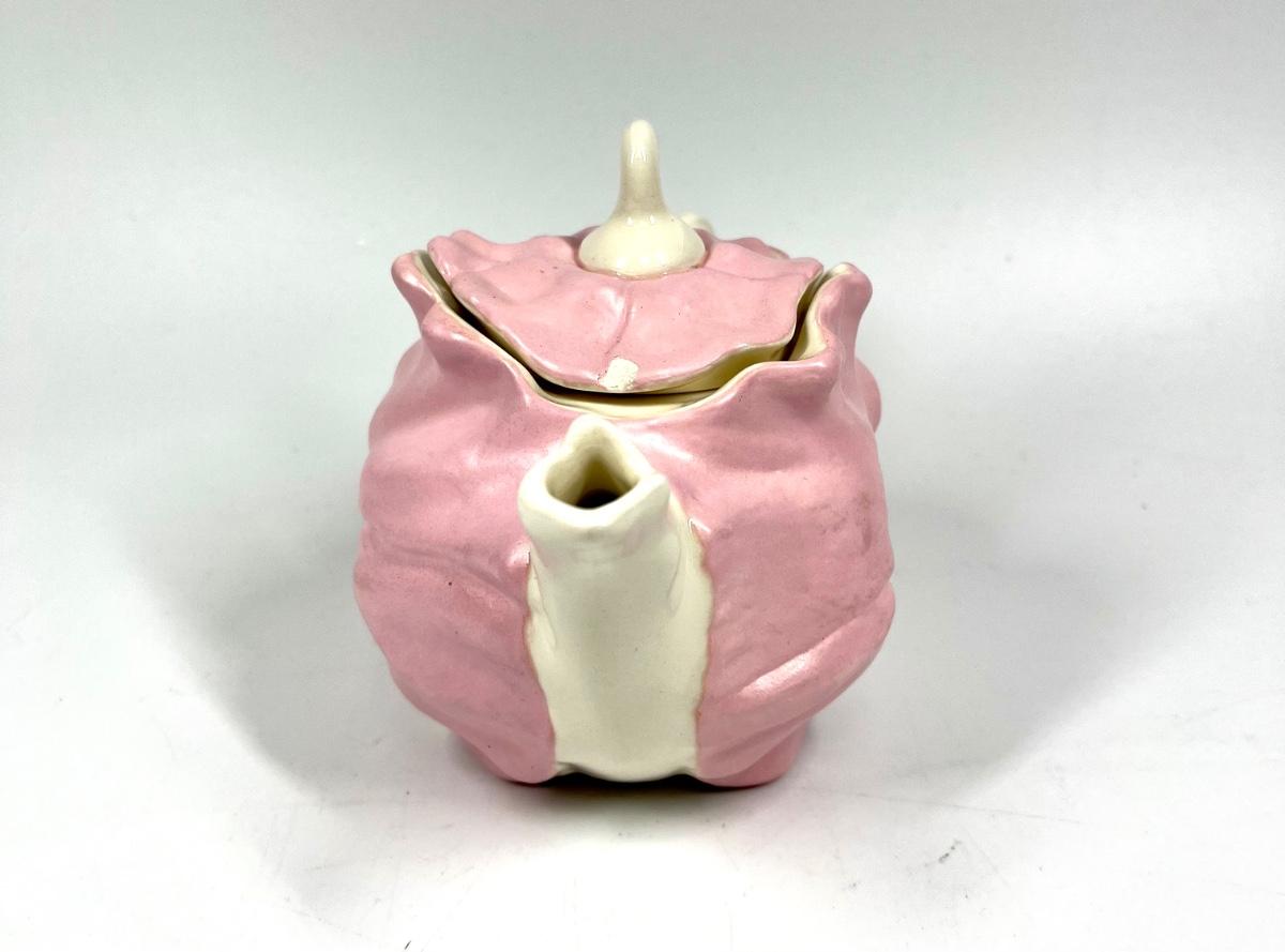 Small Vintage Pearlized Pink Flower Teapot. In good vintage condition. Unmarked.
