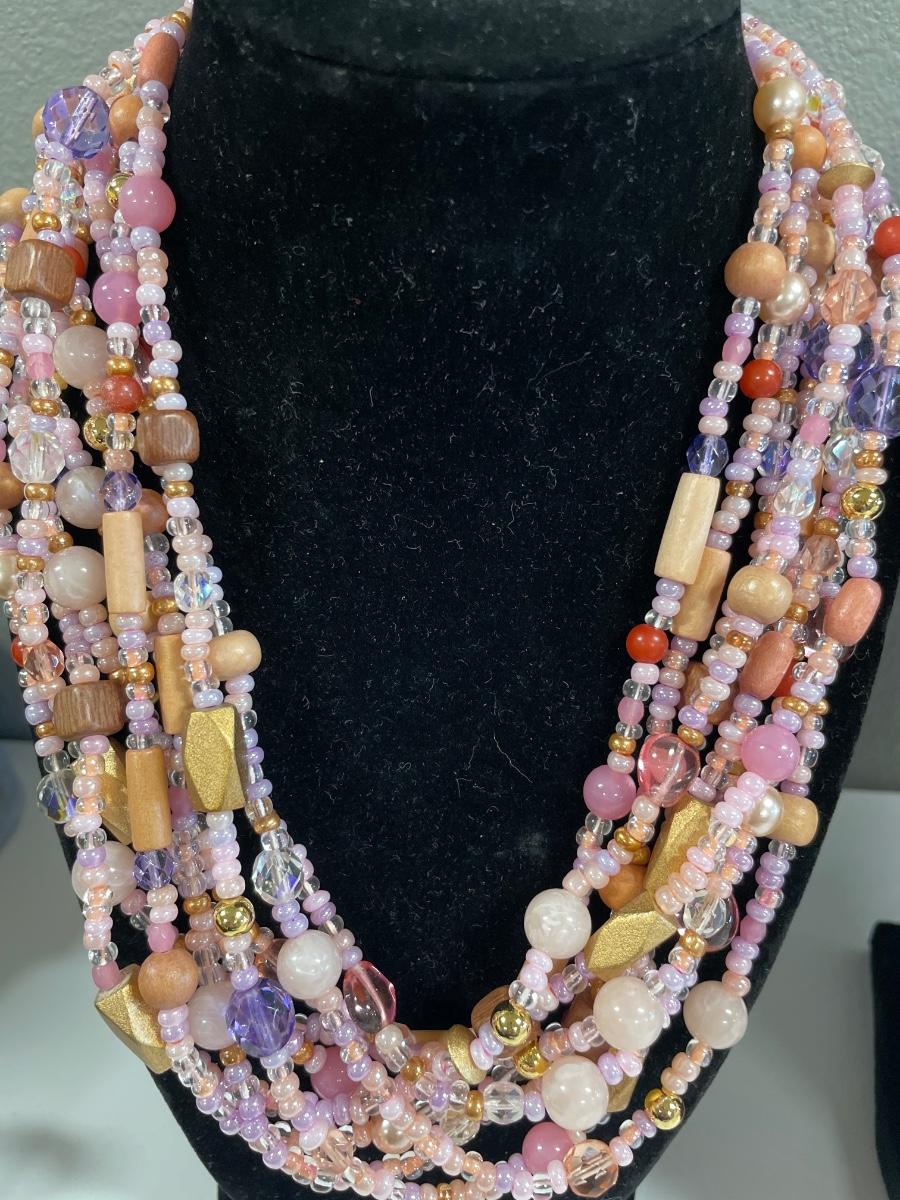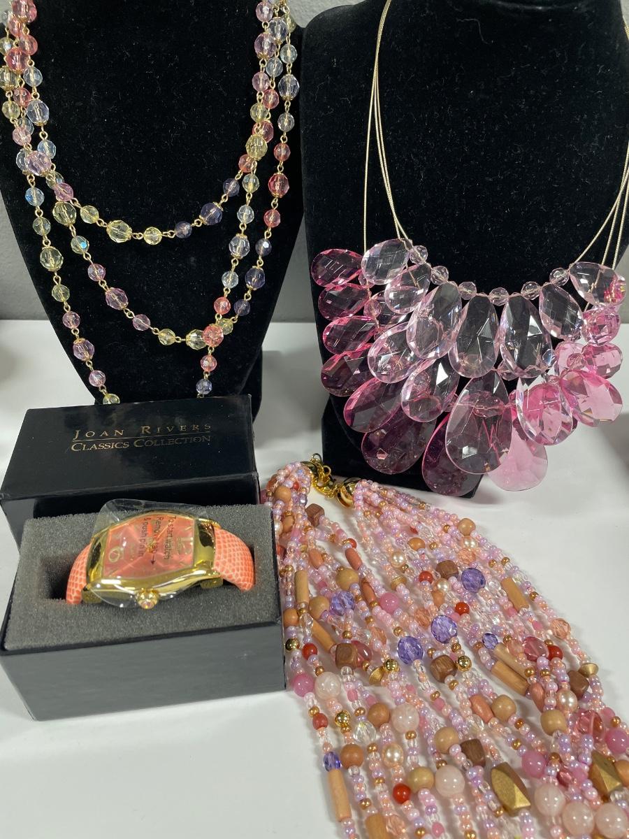 Pink bead necklaces and watch