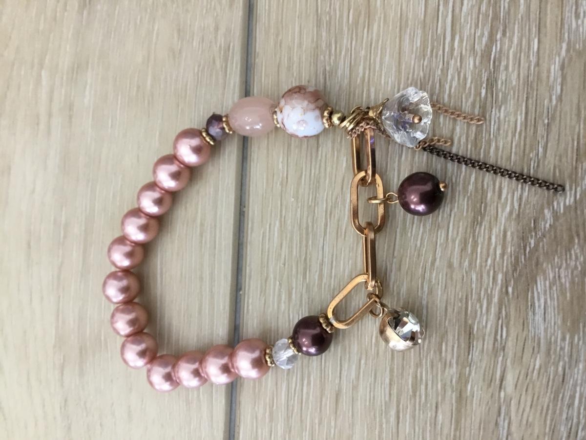 Pink beaded stretchy fashion bracelet