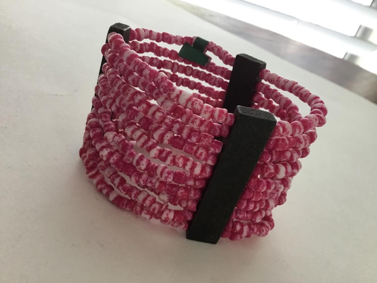 Pink beaded stretchy fashion bracelet