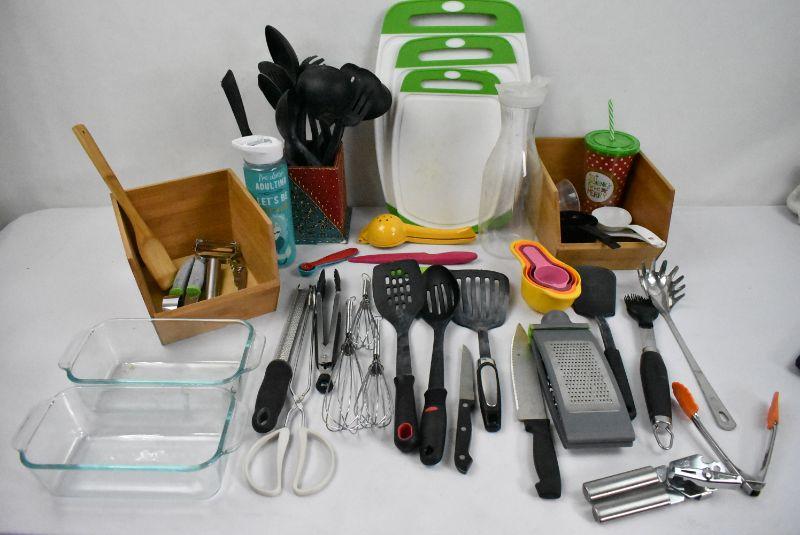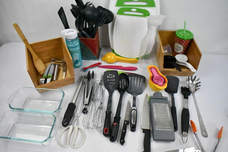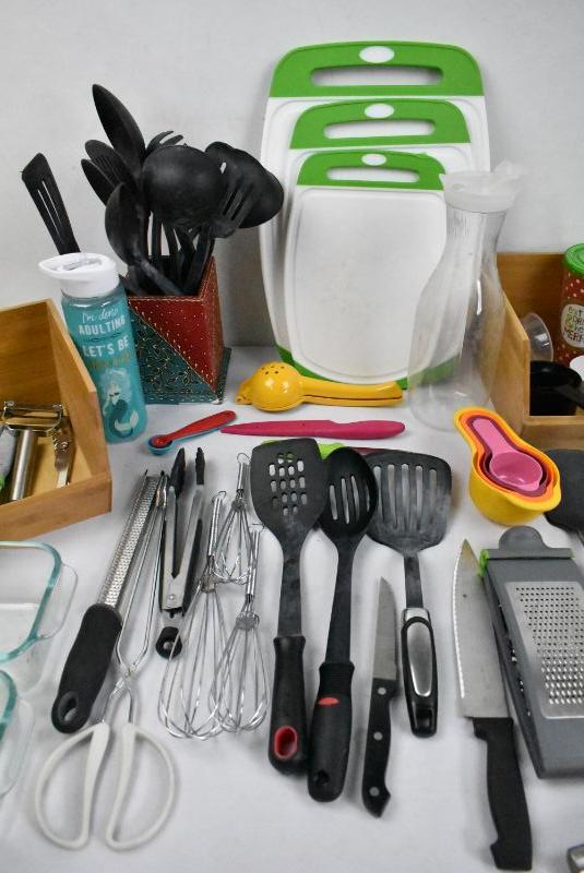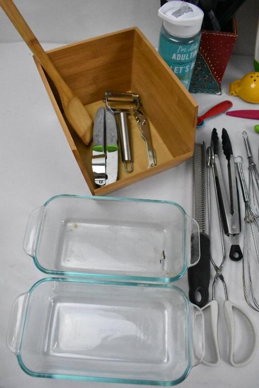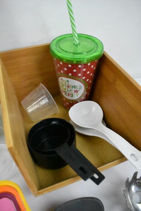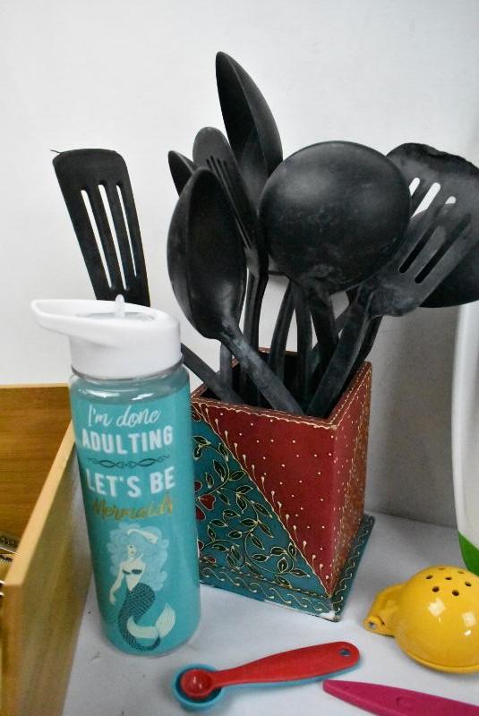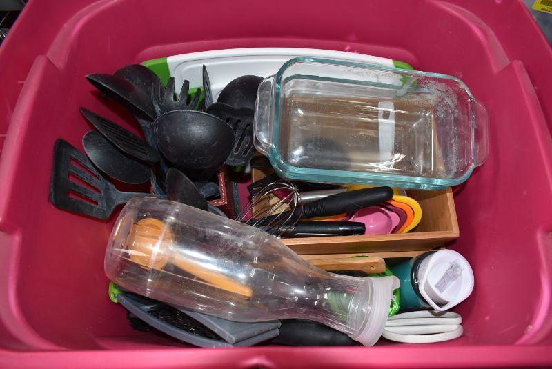 Pink Bin of Kitchen Cooking Items