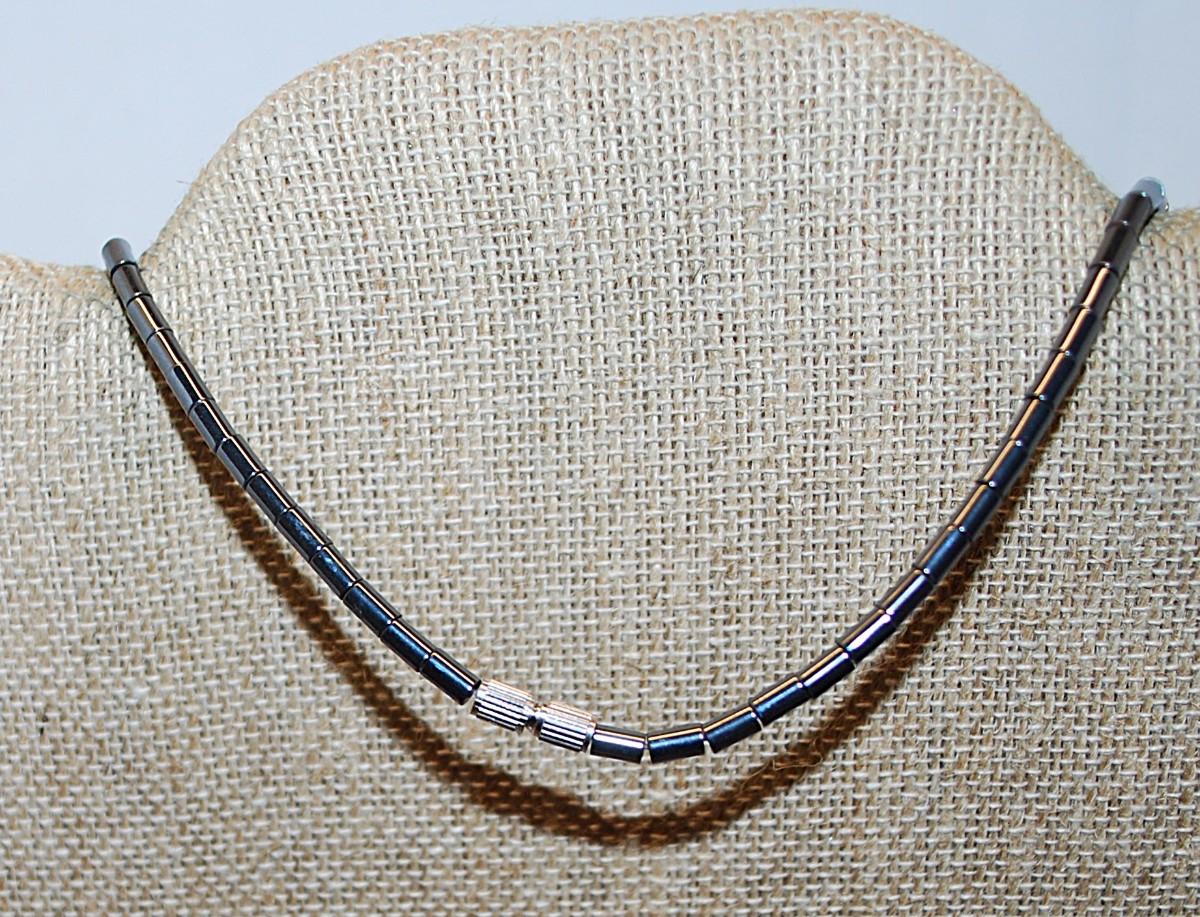 Pink & Black Beaded CHOKER NECKLACE with Black Tube Beaded "Chain" and Barrel Clasps 14" L