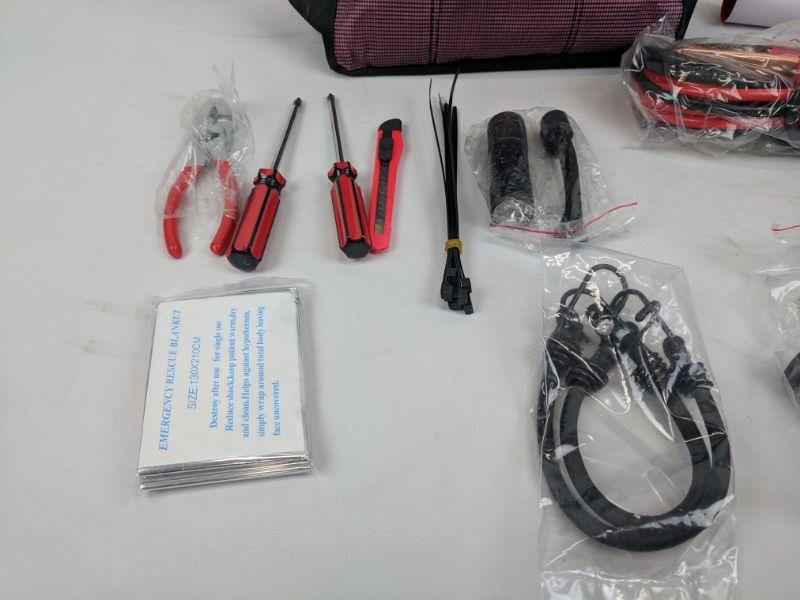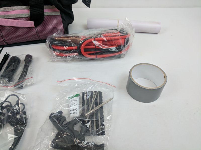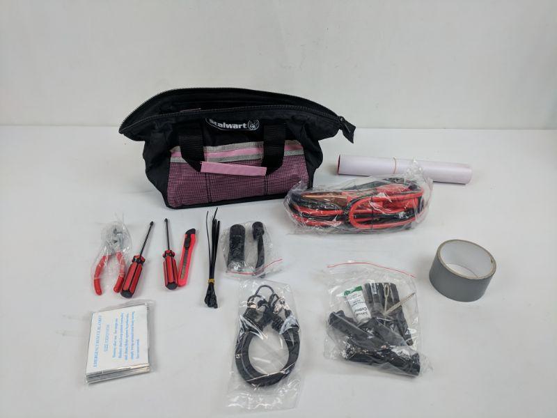 Pink & Blk Stalwart, Roadside Emergency Car Kit, Jumper Cables/Zip Ties/Tools/Duct Tape Etc