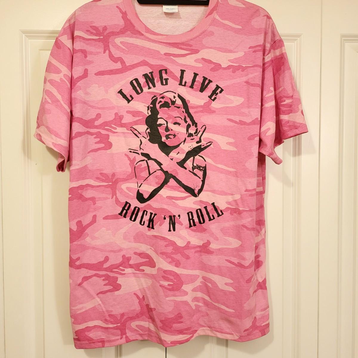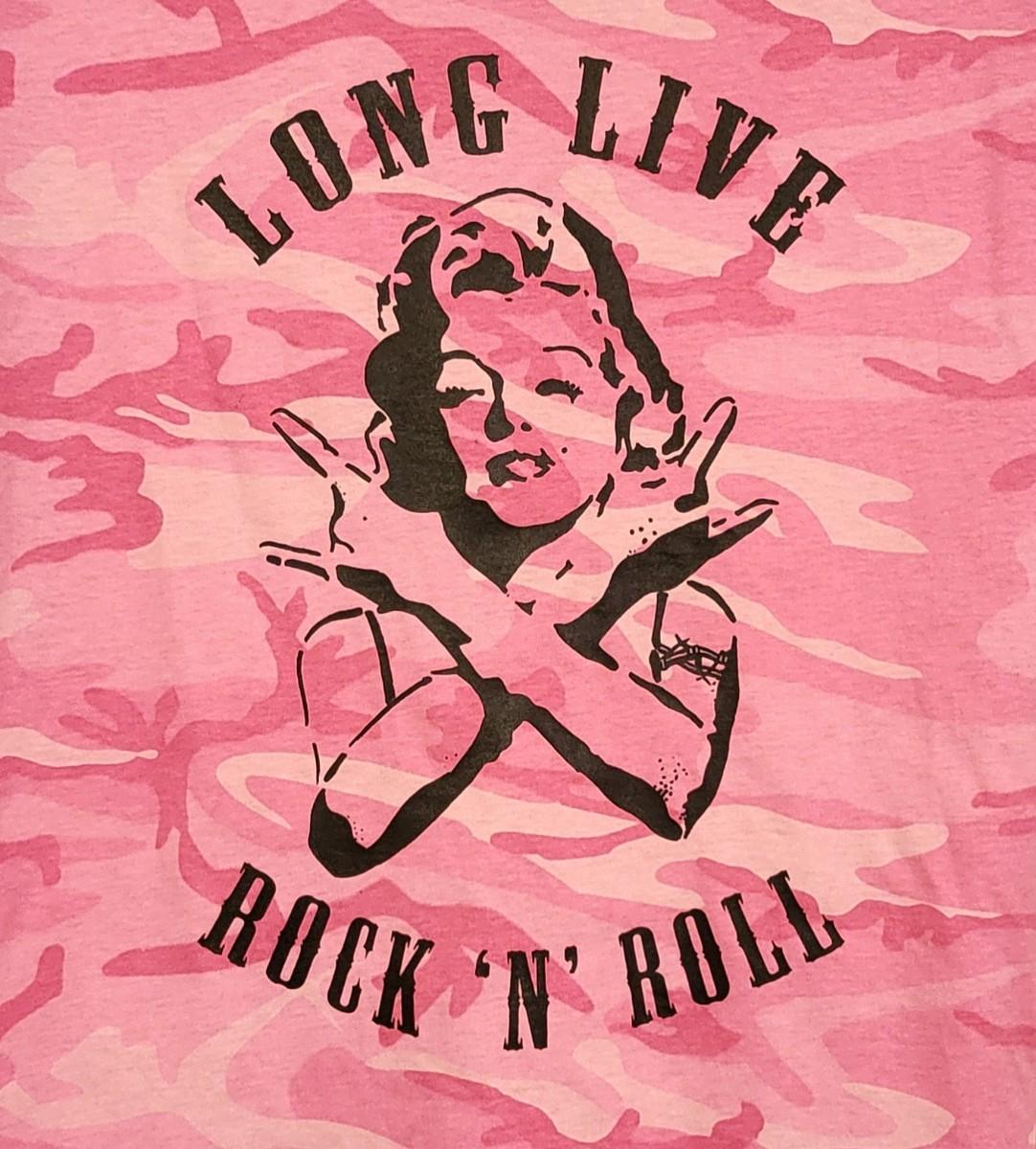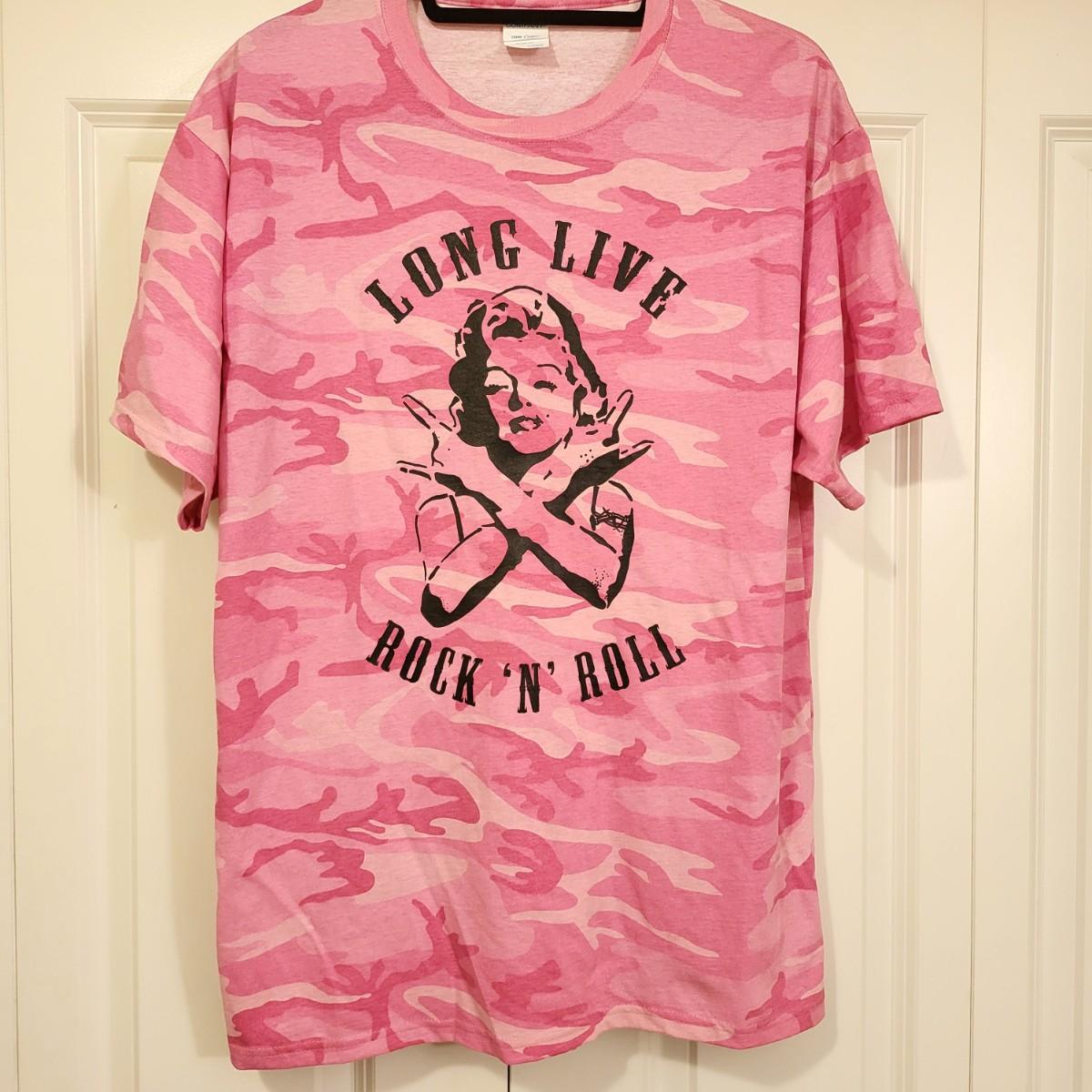 Pink Camo Marilyn Monroe 'Long Live Rock 'N Roll' Tee Shirt Size L