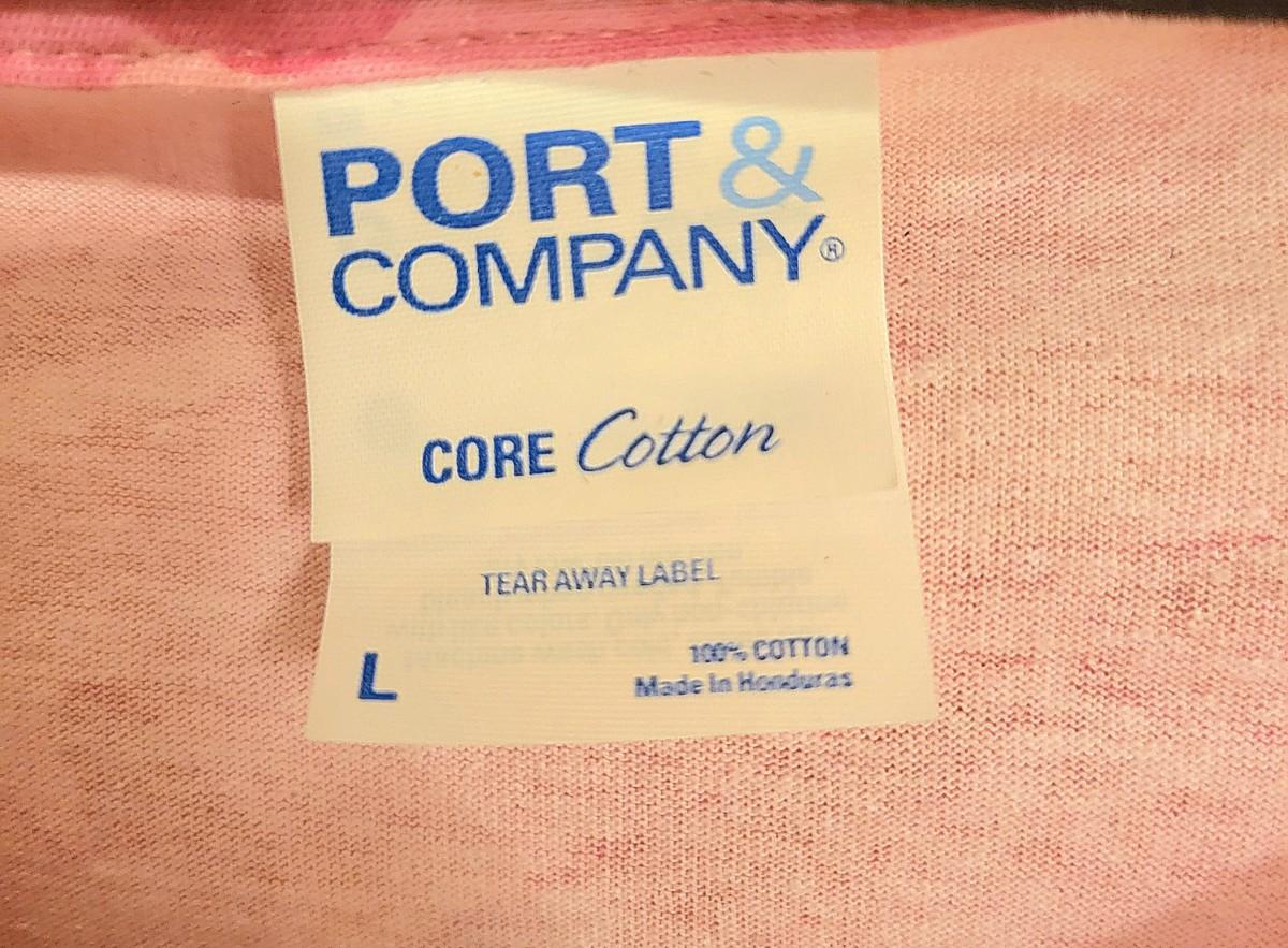Port & Company cotton tee, size large. 18" shoulder to shoulder, 30" long. Screen print of Marilyn Monroe, Long Live Rock 'N Roll on front.