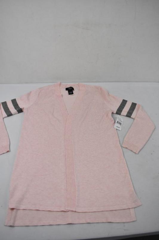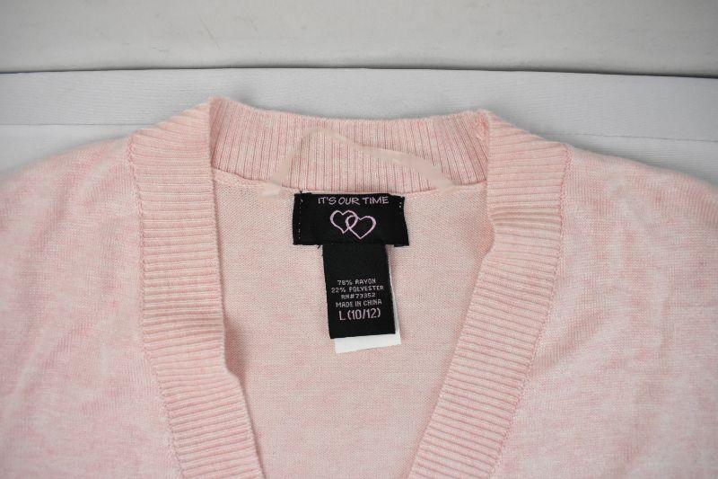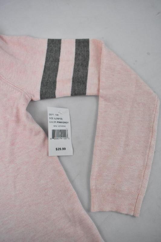 Pink Cardigan with Gray Stripes on Sleeves, Kids Size Large (10/12) - New