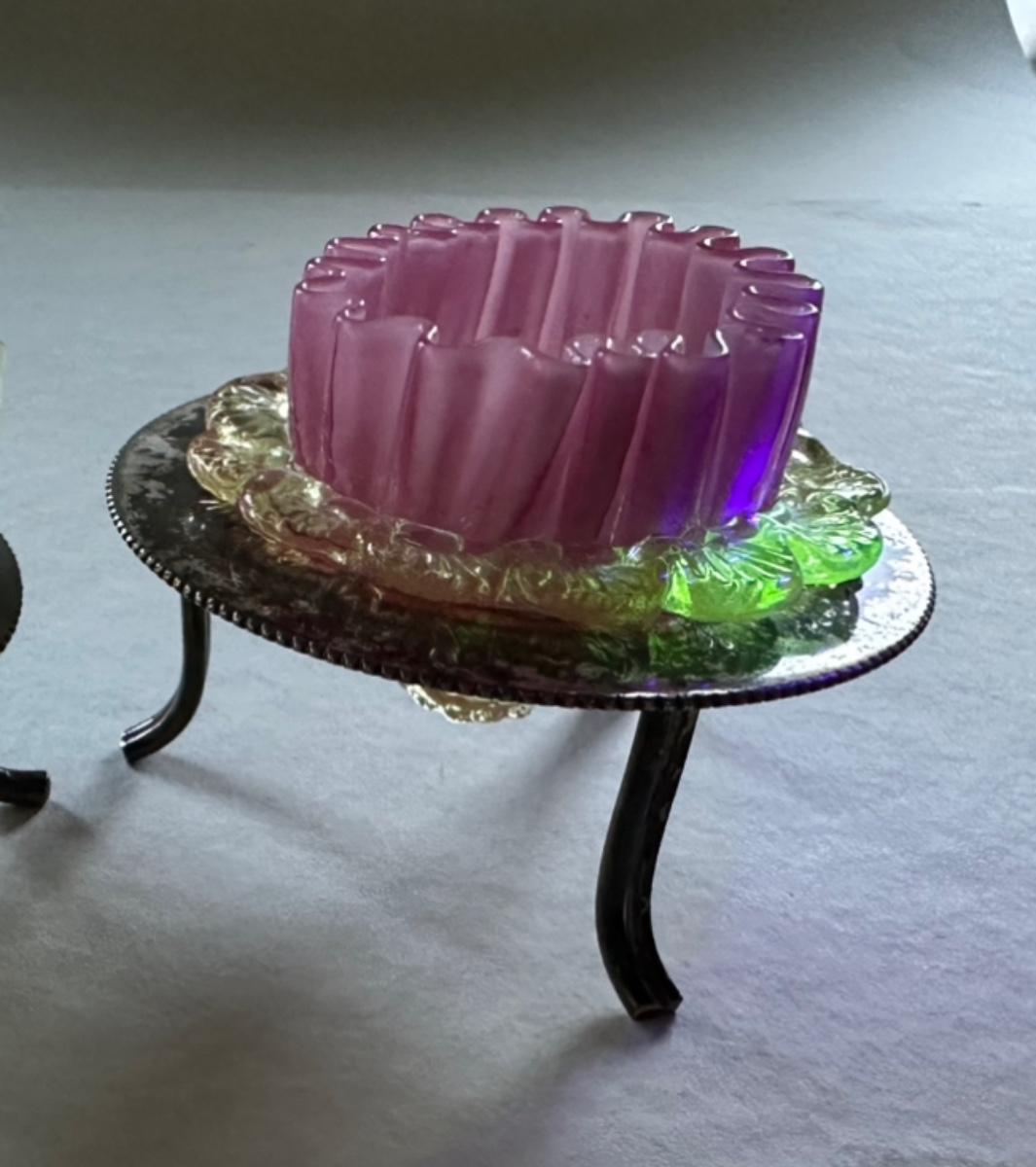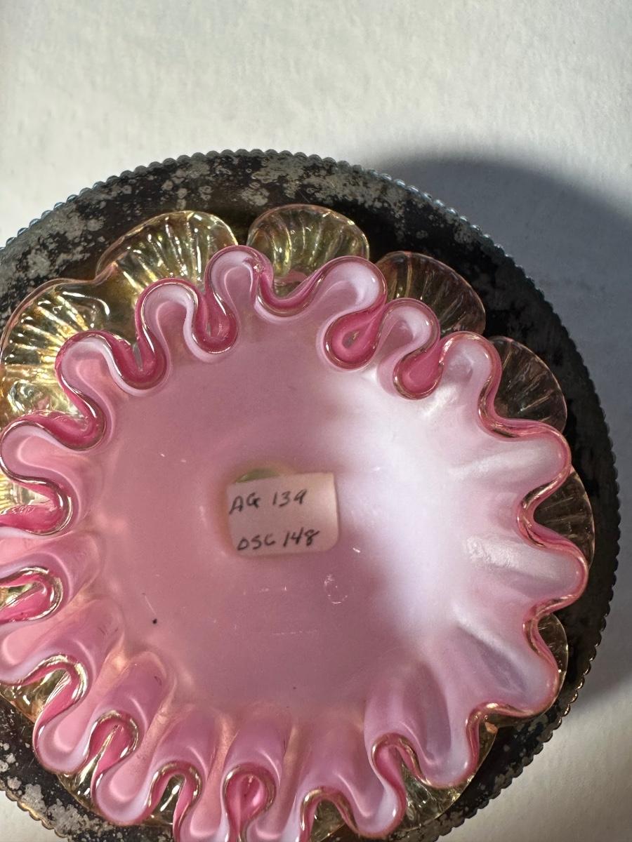 Pink cased with opal glass, crimped Rim, Vaseline rigaree