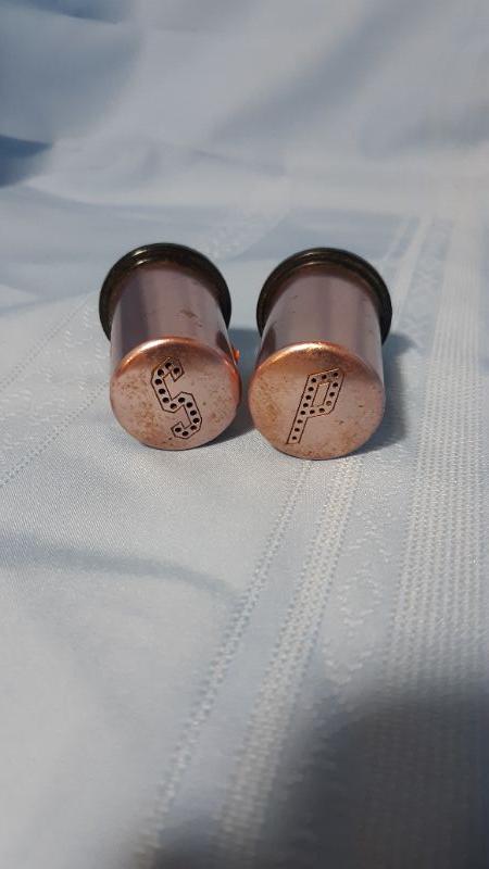 Pink copper salt and pepper shakers MADE IN USA, 2"H
