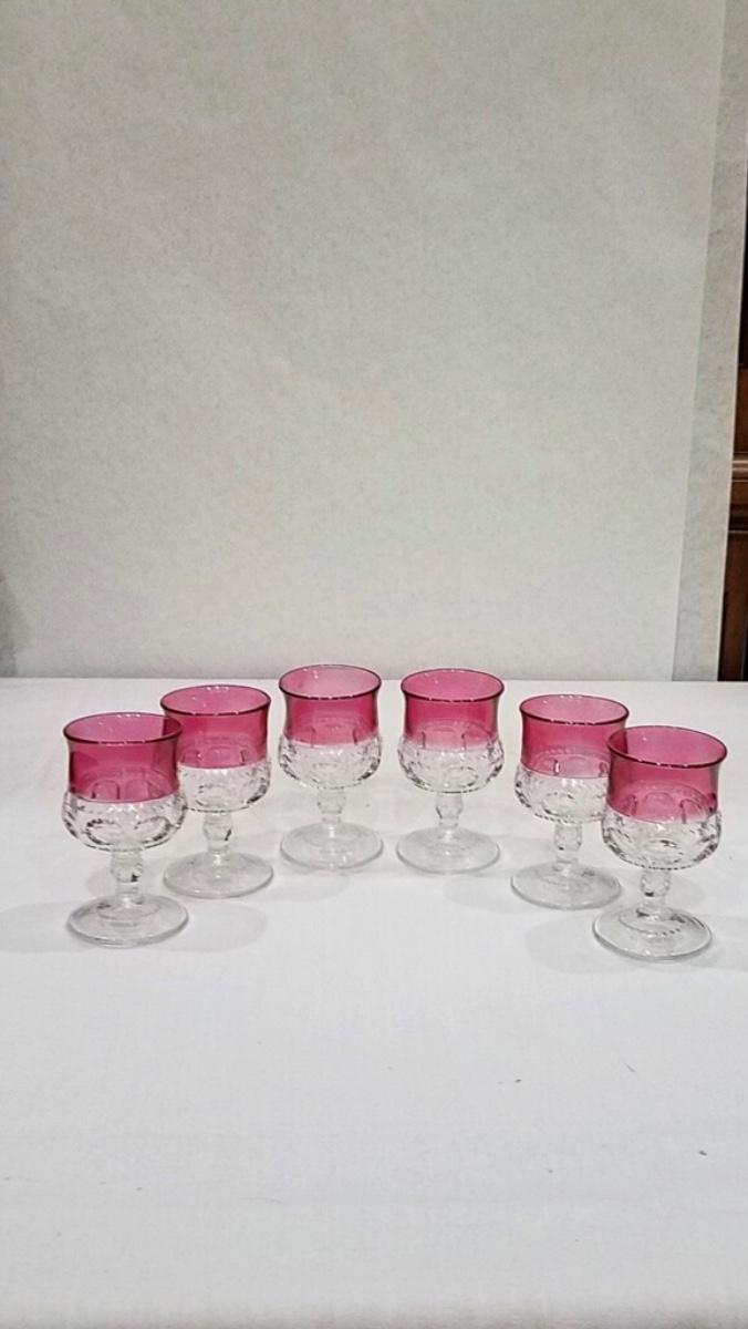 Set of 6 vintage Tiffin Franciscan Kings Crown Ruby flashed thumbprint cordial glasses