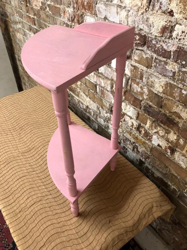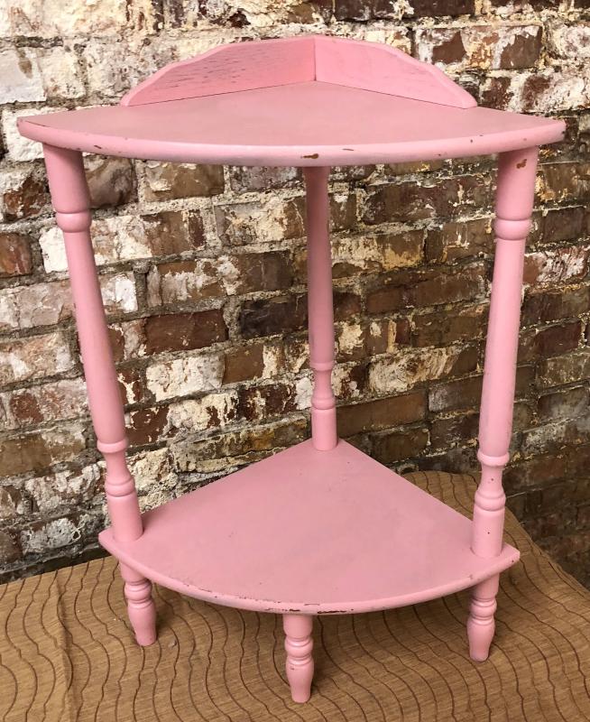 painted corner shelf, shabby~Chic, 24" tall, 13" radius.