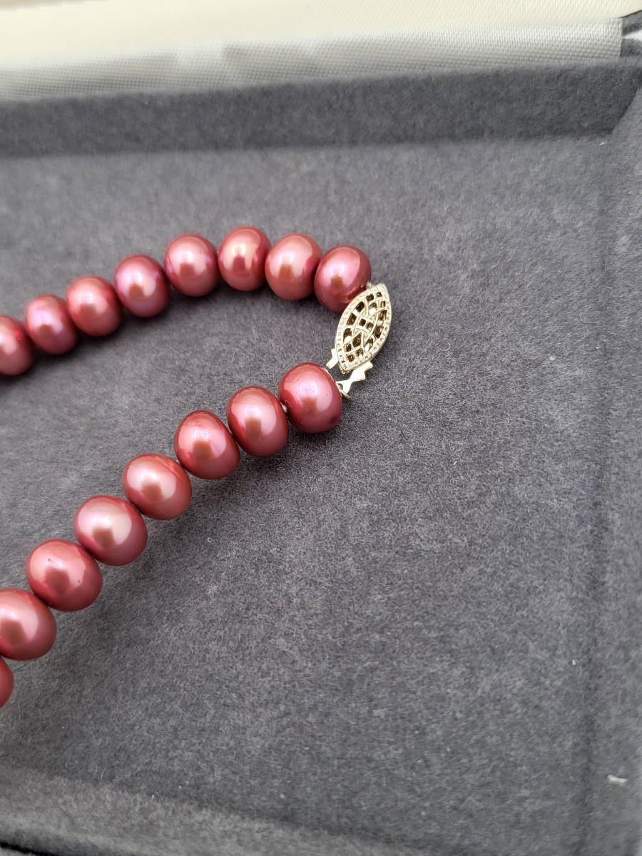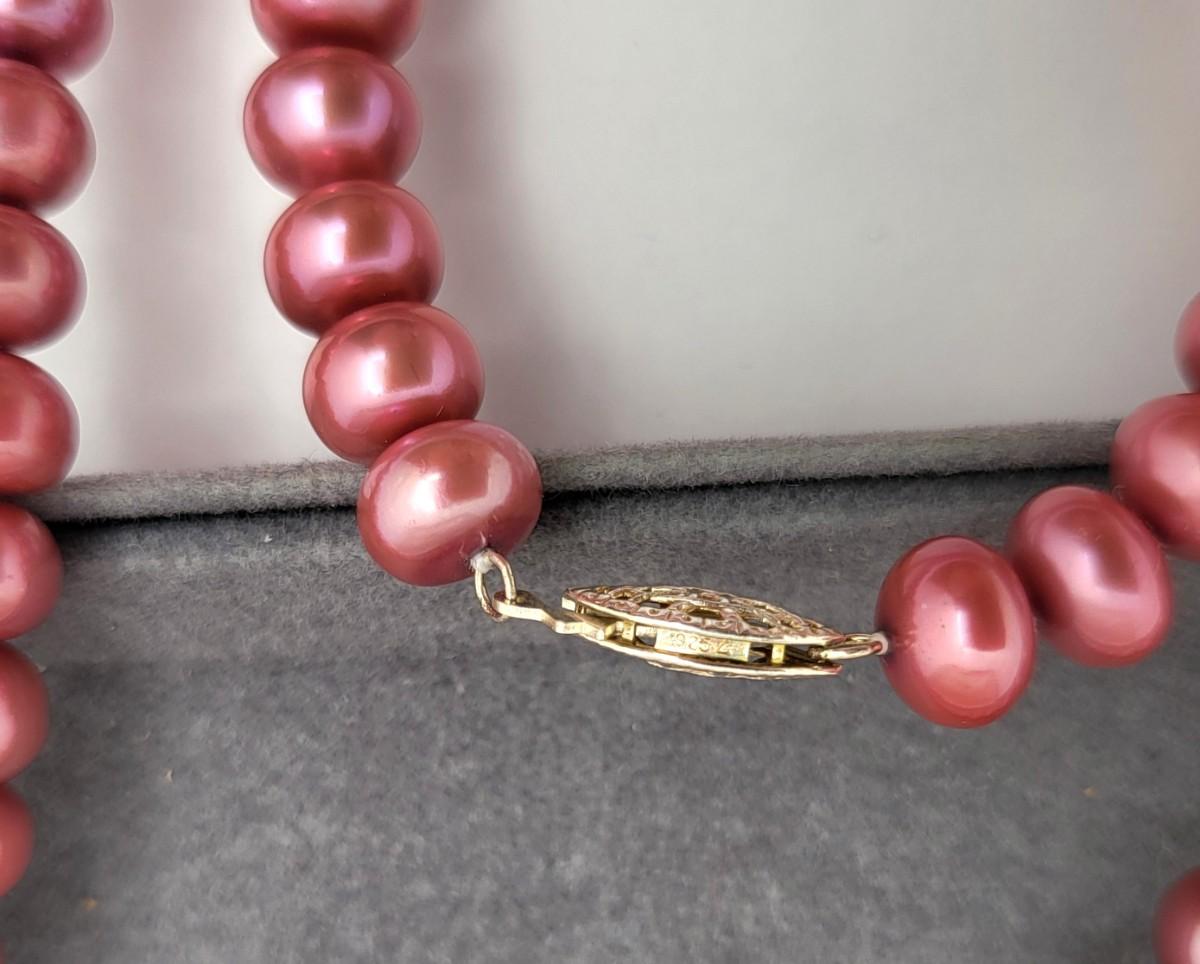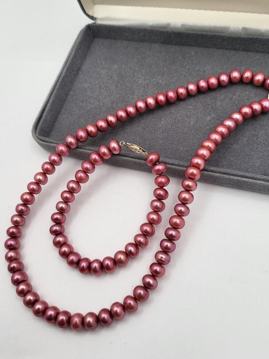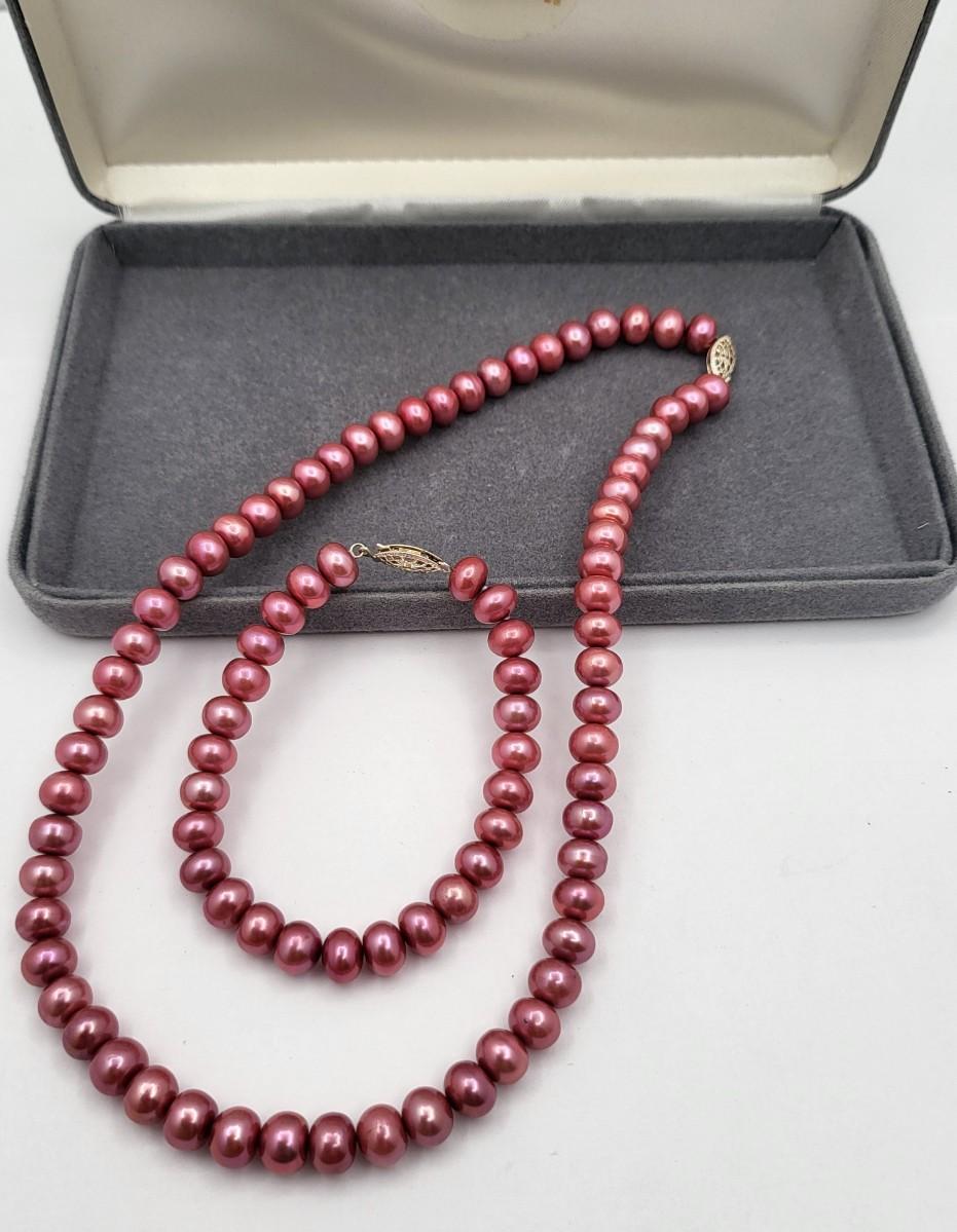 Pretty pink genuine pearls. Necklace is 17" long g and matching bracelet is 7.5" long. Both have 925 filigree clasps. 4-5mm pearls.